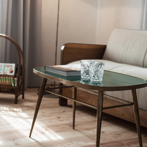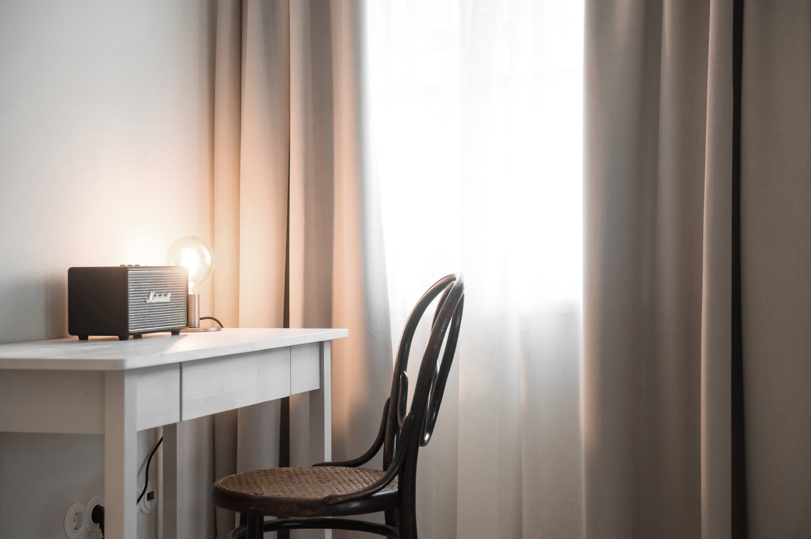 - The numerous loving but also cool details taken from different decades, like unplastered walls, wallpaper remnants, Bakelite light switches, retro fittings, an old, tiled stove, Marshall Bluetooth speakers and beautiful lamps