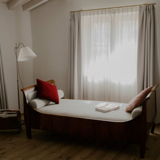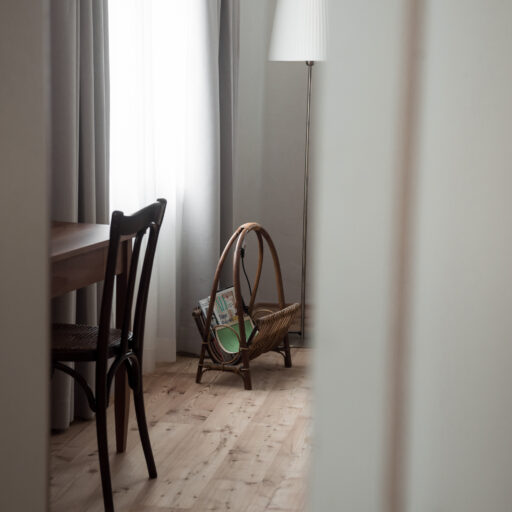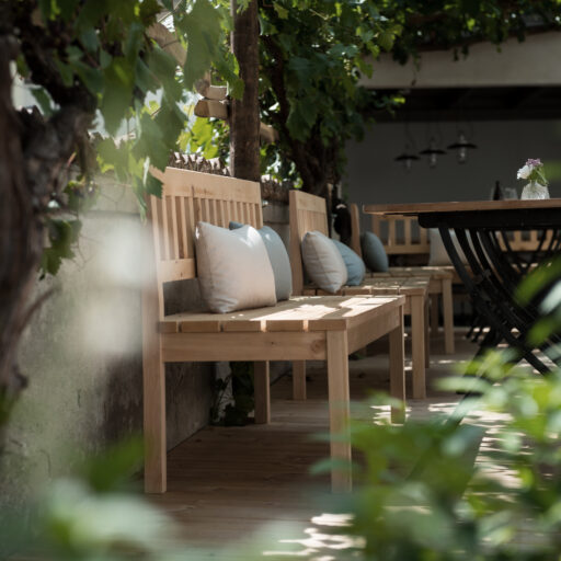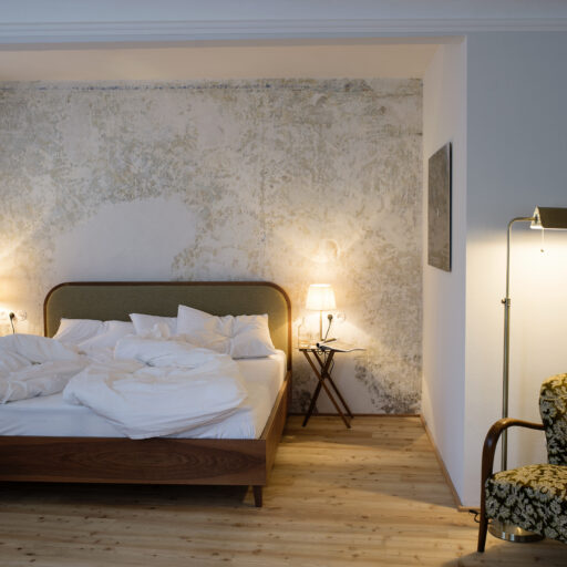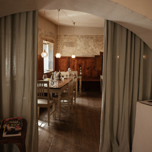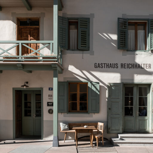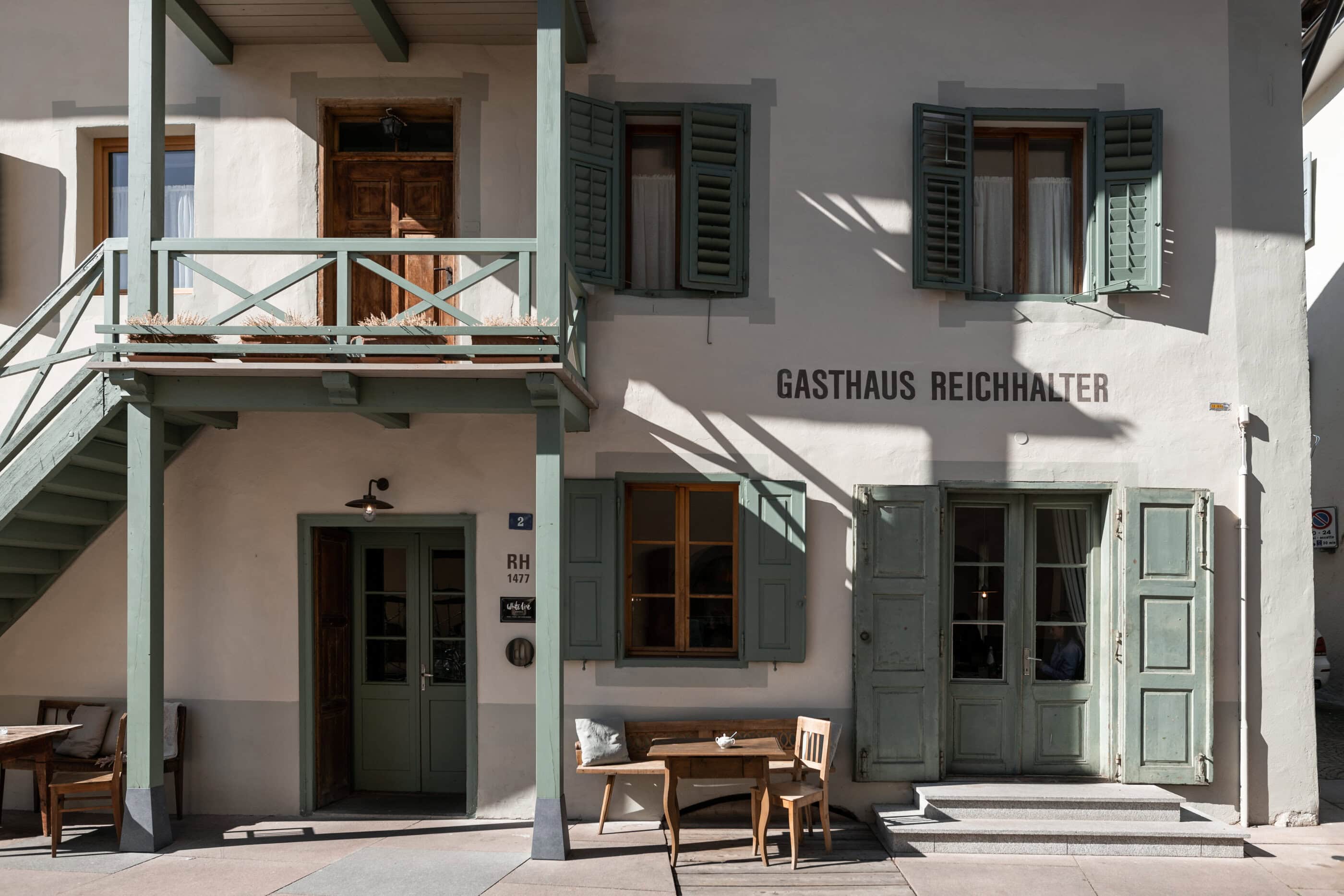 The recipe for (vacation) happiness is actually quite simple: Beautiful and inspiring surroundings, interesting people and stories, endless hours of leisure, and absolutely delicious food to boot. At the Design Hotel 1477 Reichhalter, all of these ingredients for happiness can be found in abundance. For over half a millennium, the house has stood in the center of the idyllic apple community of Lana. It has been a mill, bakery, butcher’s shop, sawmill, barn, stable, tavern and coffee house. So many people have come and gone here, so many stories have been told and lived out here every day. After buying the building, which had been empty for a long time, preserving the past of the traditional house was very important to the hotelier family Dissertori, based in Lana. As a result, exposed layers of plaster and wallpaper now adorn the walls, doors and floorboards gently creak in competition with each other, ornate keys turn in old door locks and rooms bear the names of former owners. But modernity has also moved in, along with all its comforts. Open plan bathrooms, a calm color palette, and carefully selected antique and contemporary pieces of furniture carefully blend into a coherent whole. Right down to the newly extended roof, which houses the roof terrace, everything is of the finest and most exquisite quality—and yet appears so simple and authentic. From the outside, the building has been largely preserved, it looks elegant and tremendously inviting, with its bright facade and its pretty pastel-colored doors, shutters and balconies. A café and a first-class restaurant have moved into the first floor. Here, locals and hotel guests share their morning espresso, chat with the warm Dissertori family, or feast on delicacies from the restaurant’s kitchen or in-house patisserie. Talking. Eating. Being together. Just as it has always been.