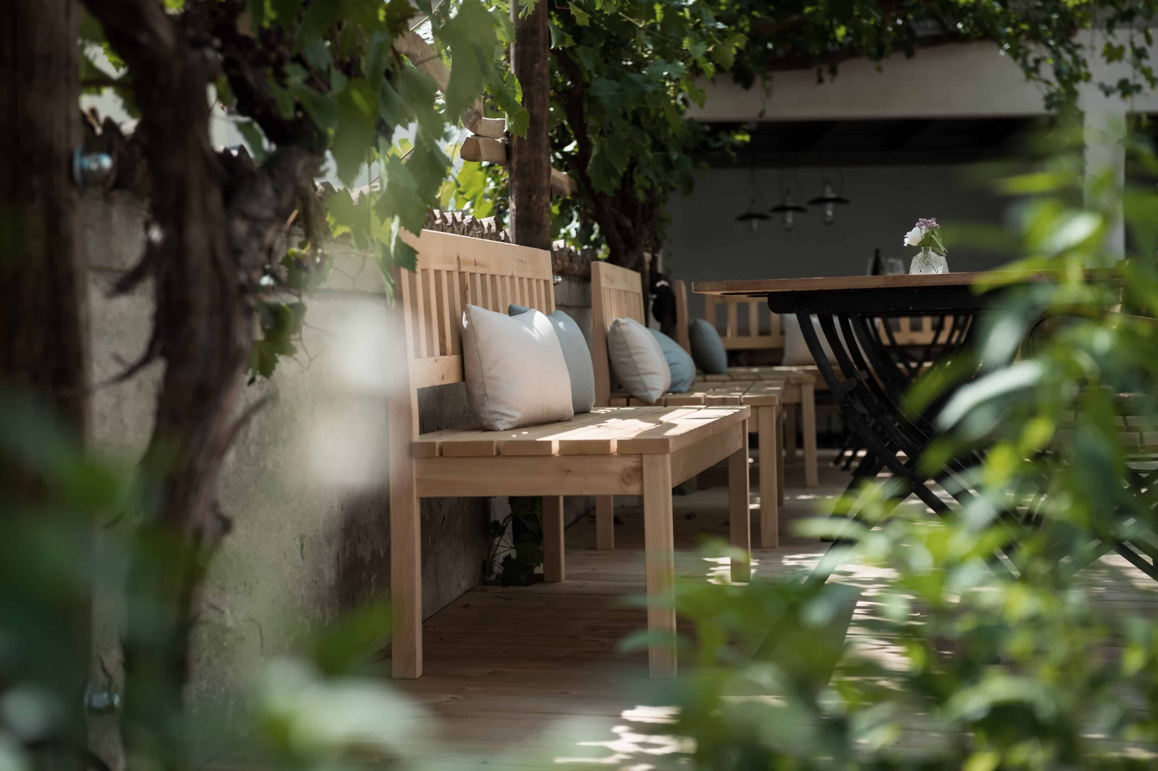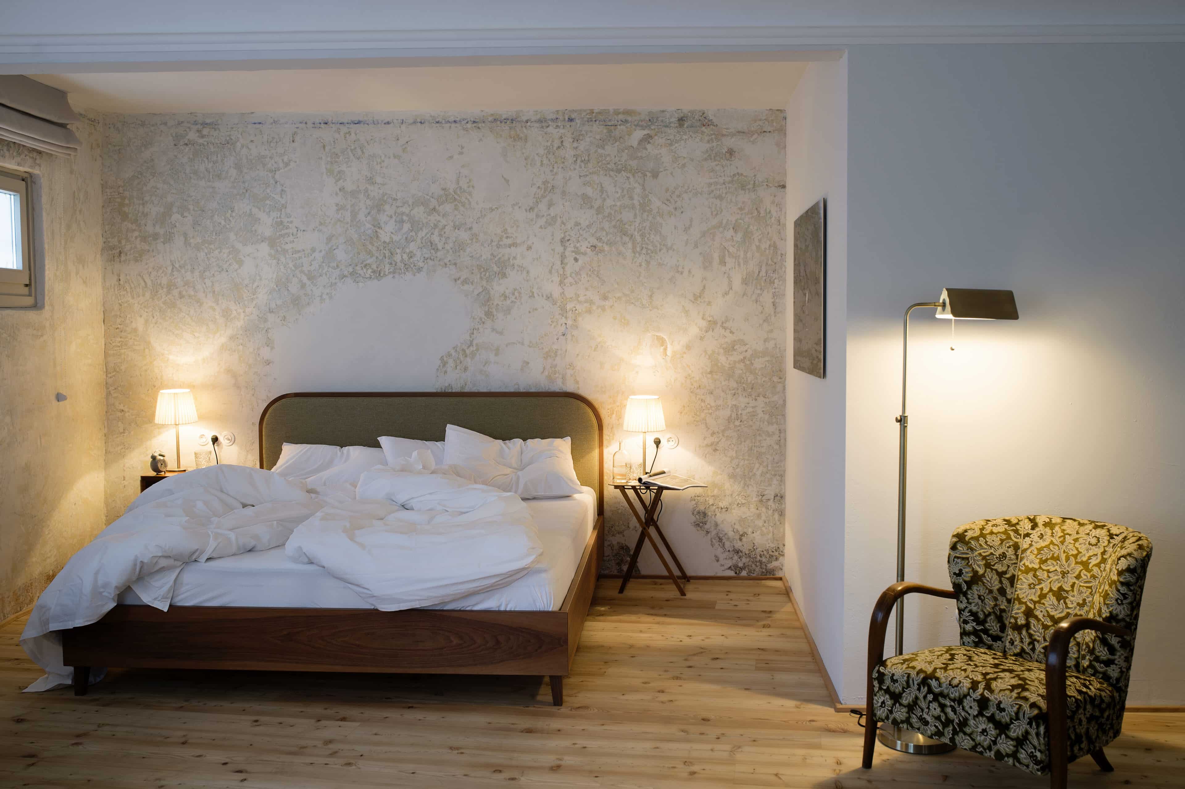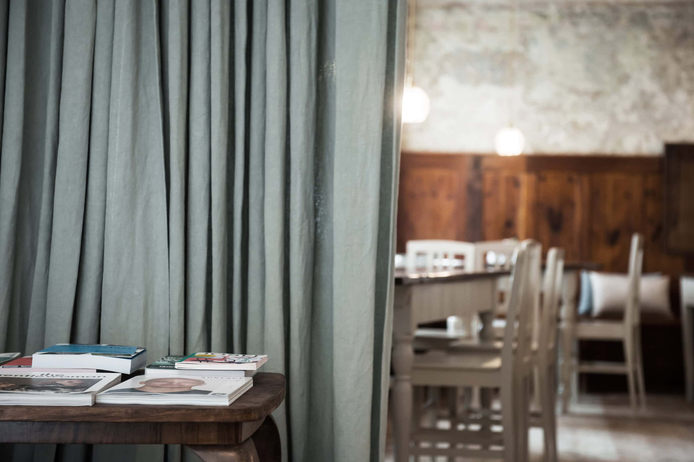 The recipe for (vacation) happiness is actually quite simple: Beautiful and inspiring surroundings, interesting people and stories, endless hours of leisure, and absolutely delicious food to boot. At the Design Hotel 1477 Reichhalter, all of these ingredients for happiness can be found in abundance. For over half a millennium, the house has stood in the center of the idyllic apple community of Lana. It has been a mill, bakery, butcher’s shop, sawmill, barn, stable, tavern and coffee house. So many people have come and gone here, so many stories have been told and lived out here every day. After buying the building, which had been empty for a long time, preserving the past of the traditional house was very important to the hotelier family Dissertori, based in Lana. As a result, exposed layers of plaster and wallpaper now adorn the walls, doors and floorboards gently creak in competition with each other, ornate keys turn in old door locks and rooms bear the names of former owners. But modernity has also moved in, along with all its comforts. Open plan bathrooms, a calm color palette, and carefully selected antique and contemporary pieces of furniture carefully blend into a coherent whole. Right down to the newly extended roof, which houses the roof terrace, everything is of the finest and most exquisite quality—and yet appears so simple and authentic. From the outside, the building has been largely preserved, it looks elegant and tremendously inviting, with its bright facade and its pretty pastel-colored doors, shutters and balconies. A café and a first-class restaurant have moved into the first floor. Here, locals and hotel guests share their morning espresso, chat with the warm Dissertori family, or feast on delicacies from the restaurant’s kitchen or in-house patisserie. Talking. Eating. Being together. Just as it has always been.