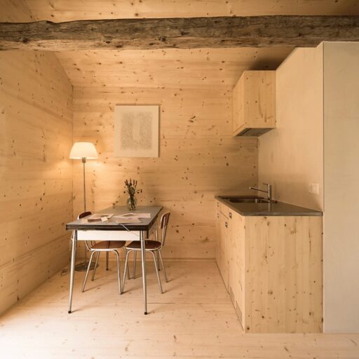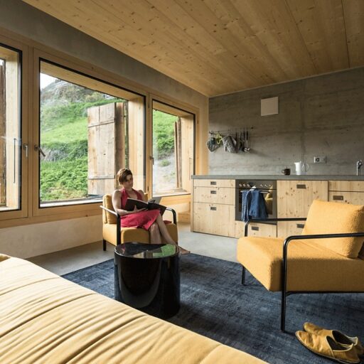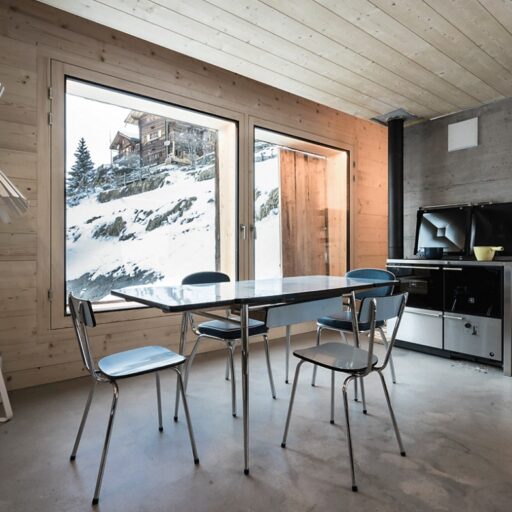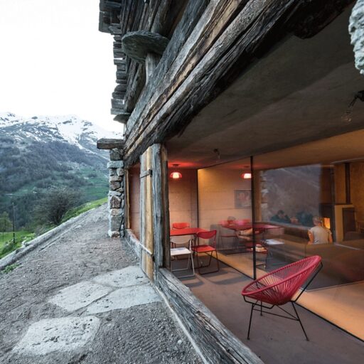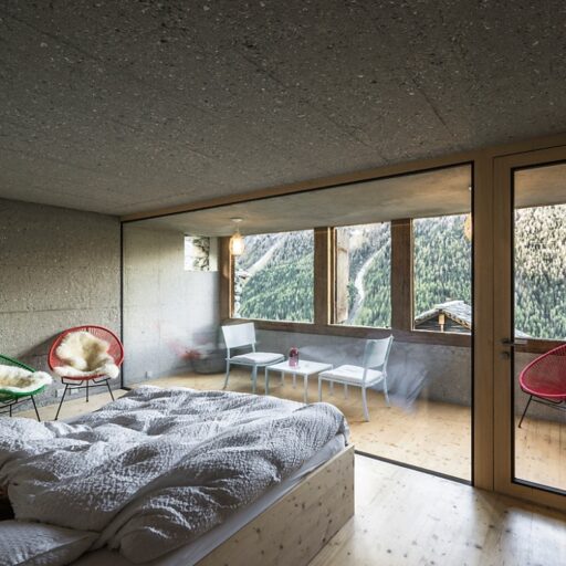 Sechs Maiensässe und Heuschober, die schon dem Abbruch geweiht waren, wurden unter Federführung des Architekten Olivier Chefeaux in dem kleinen Walliser Ort La Forclaz Evolène wieder aufgebaut. Das zeitgenössische, reduzierte Innendesign ist so schön, der Blick aus dem Fenster so spektakulär, dass es einem glatt den Atem verschlägt. Könnte man doch für immer hier bleiben, vor der Hütte auf den roten Stühlen sitzen und auf die Berge schauen – mehr Entschleunigung geht nicht.