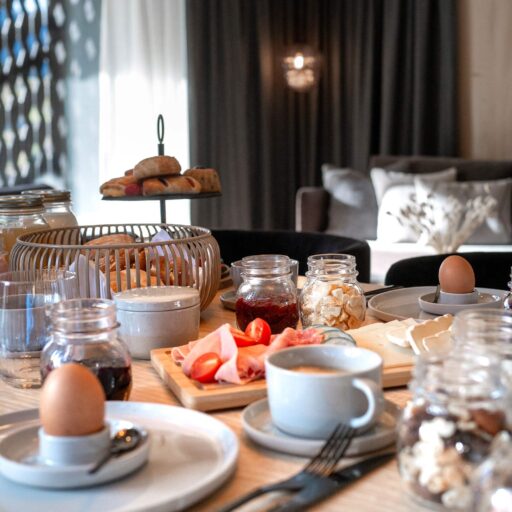 • The breakfast basket, which is filled with regional products. It appears in your room in the morning as if by magic, holding sweet braided bread, Allgäu cheese, eggs from the farm around the corner, and surprises from the kitchen.