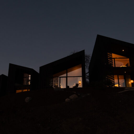 • How the four modern houses are built in terraces on the hillside and blend naturally into their surroundings