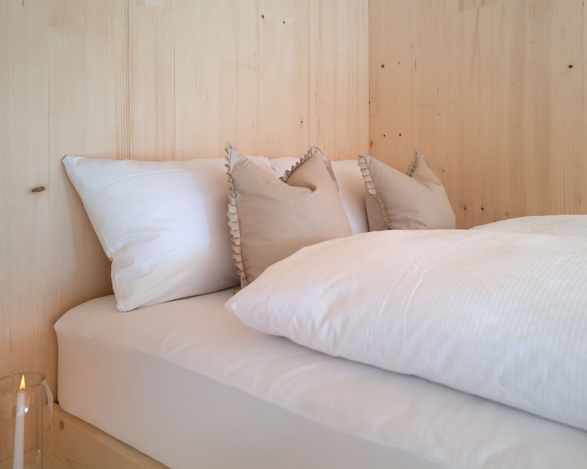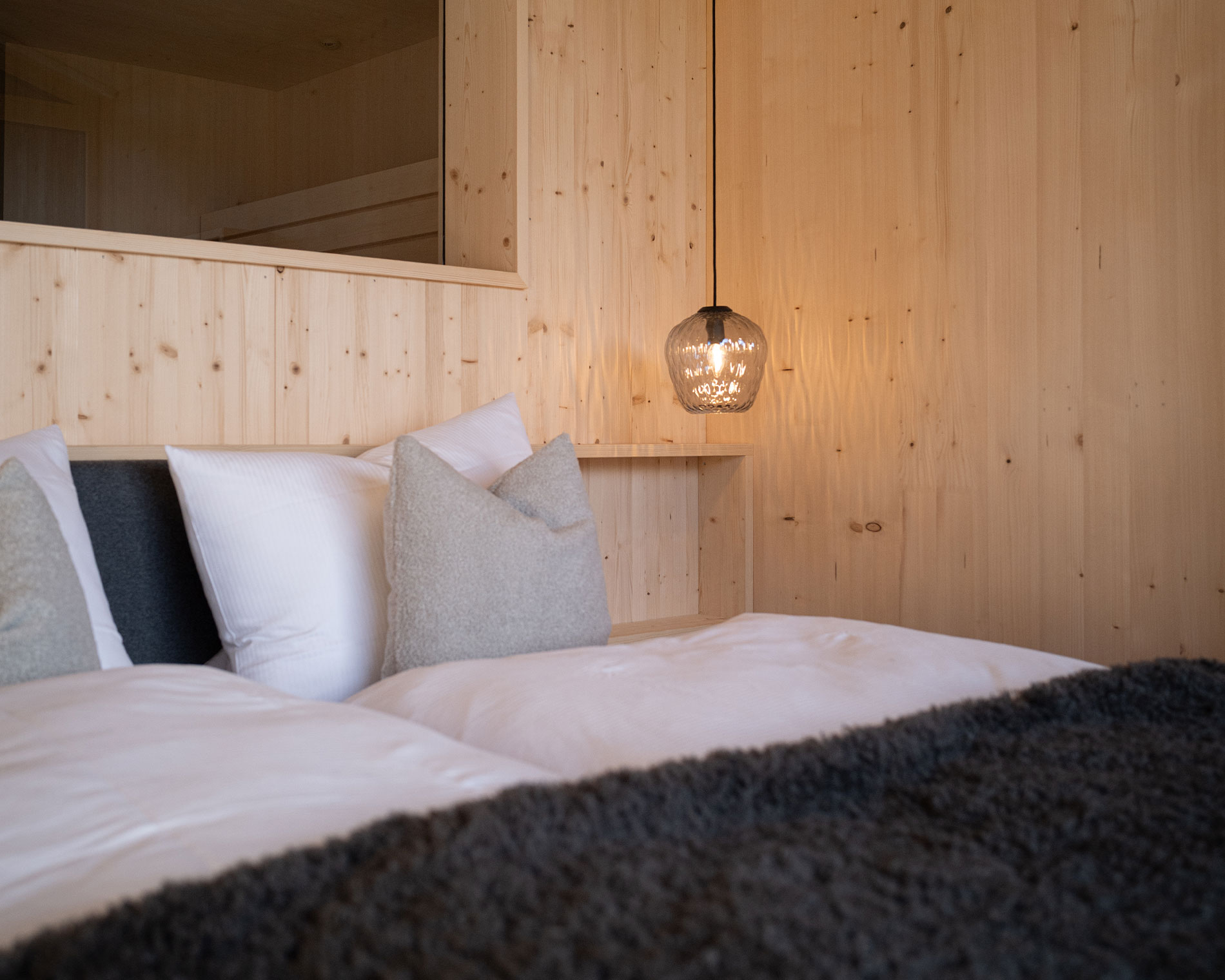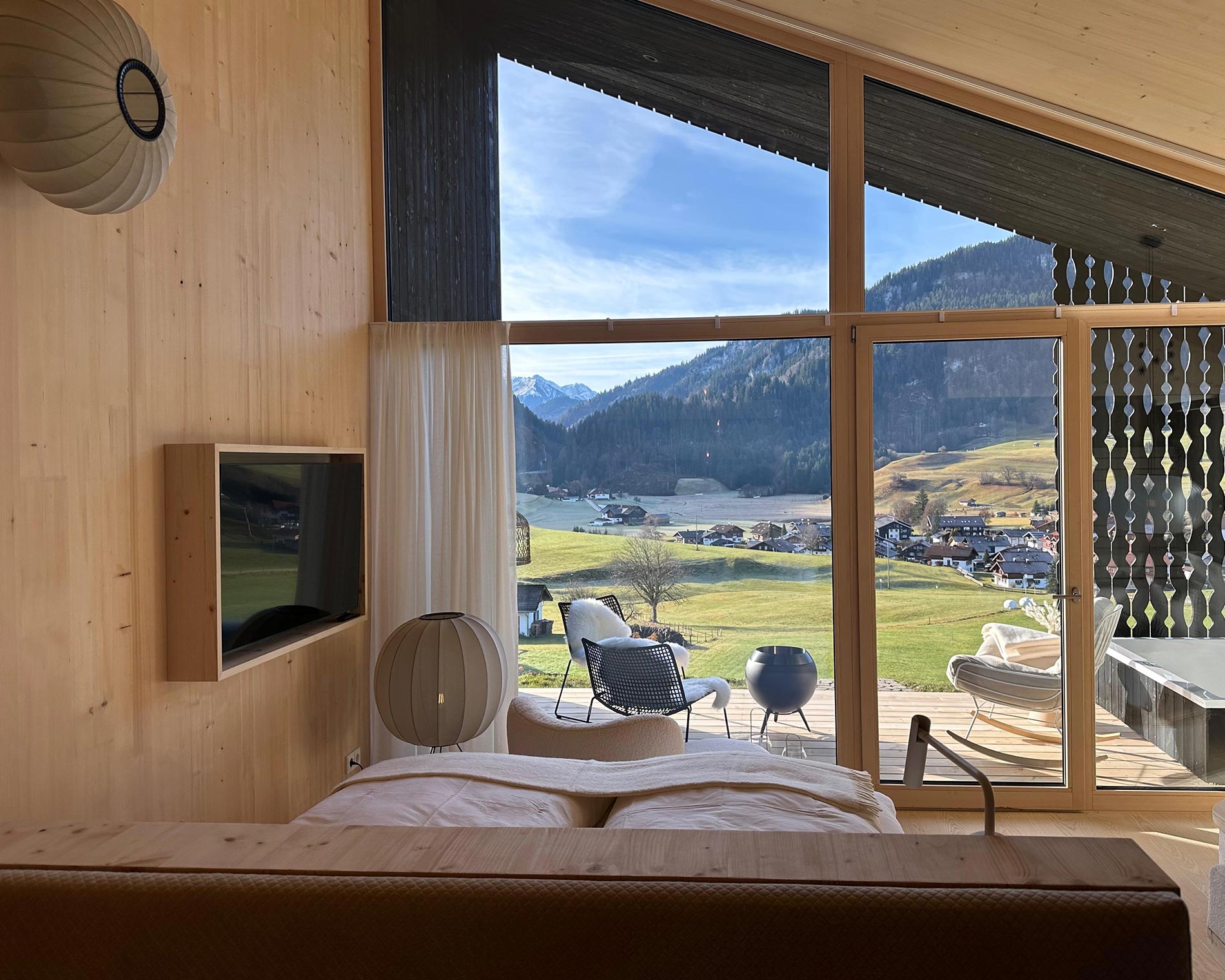 Soft, natural tones, the scent of spruce wood, cozy fabrics from regional manufacturers—as soon as you step into one of Anton & Cilli’s four Stadl Lodges in the Allgäu region, you instantly feel at ease. It’s a little like being at home, but without the everyday routine. There are long, softly upholstered sofas inviting you to enjoy the view of apple trees, meadows, and mountains through the large windows. There’s a well-equipped kitchen, a private sauna, and a heated outdoor whirlpool tub on the large loggia. This hideaway on the Oberdorf hill above Obermaiselstein, which has been welcoming holiday guests since December 2025, was designed by hosts Andrea and Sebastian with relaxation and unwinding in mind. It was named after Andreas’ grandparents, who used to run their farm here and rent rooms to holidaymakers. The two Anton lodges are inspired by Grandpa Anton, the sociable one—open, generous, and with space for shared moments. The two Cilli lodges are a nod to Grandma Cilli; they are slightly smaller, single-story, and have a warm, cozy character. The newly built lodges reflect the hospitality, down-to-earth nature, warmth, and a sense of what’s important to the two hosts. The wood used to build them comes from the grandfather’s forest. Charred on the outside like an Allgäu barn, yet built in a modern architectural style, modernity and tradition create the perfect blend. Waking up here for the first time, it soon becomes clear that the people running this place value creating very special moments: While guests are still in bed, they quietly and unobtrusively deliver a breakfast basket directly to the lodge through a hatch. It’s precisely these little things that remain in mind as unforgettable holiday memories.