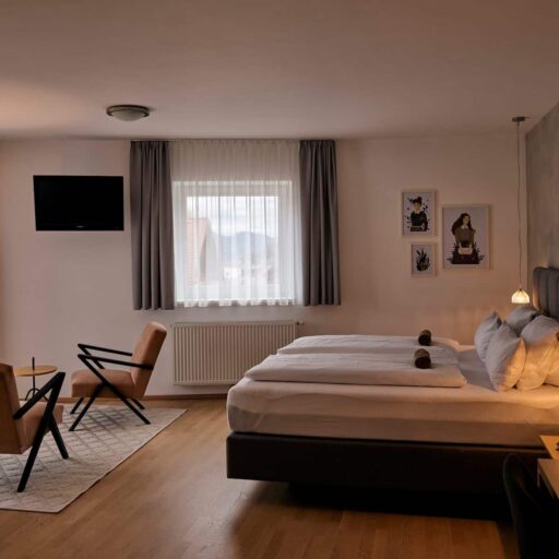 The name says it all: small and exclusive on the Arx, the mountain peak, surrounded by a magnificent mountain panorama. In winter, it's straight to the slopes, in summer, hiking in the mountains: marvel at gushing waterfalls, swim in clear mountain lakes, walk through green valleys. The name also reflects the hotel’s high aspirations – the Veith family are passionate hosts, they love good food and good wines, and the little comforts with which they can please guests. They like to try new things, pay attention to the details and, at the same time, remain wonderfully relaxed. The Veith family has continually improved the small guesthouse and pizzeria in Schladming, Styria, since the 1990s. Mama Helga and her husband Wolfgang took over the house in 1988, and her son Manuel, formerly a professional snowboarder, and his wife Anna, an Olympic and world champion skier, eventually came on board. Together they have made the small ARX boutique hotel in the midst of the fascinating mountain landscape into an absolute feel-good place. Modern and simple furnishings, clean lines, muted colors, pretty illustrations in the rooms and the restaurant give the house personality and warmth. It’s the perfect place to return to after a blissful day in the mountain air.