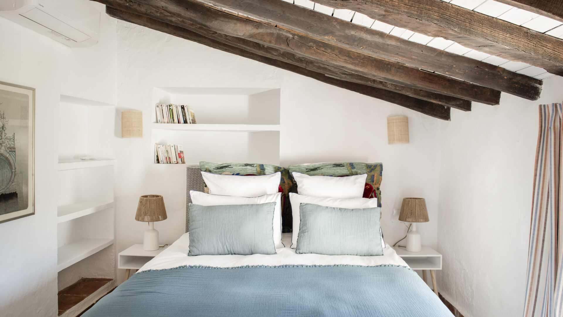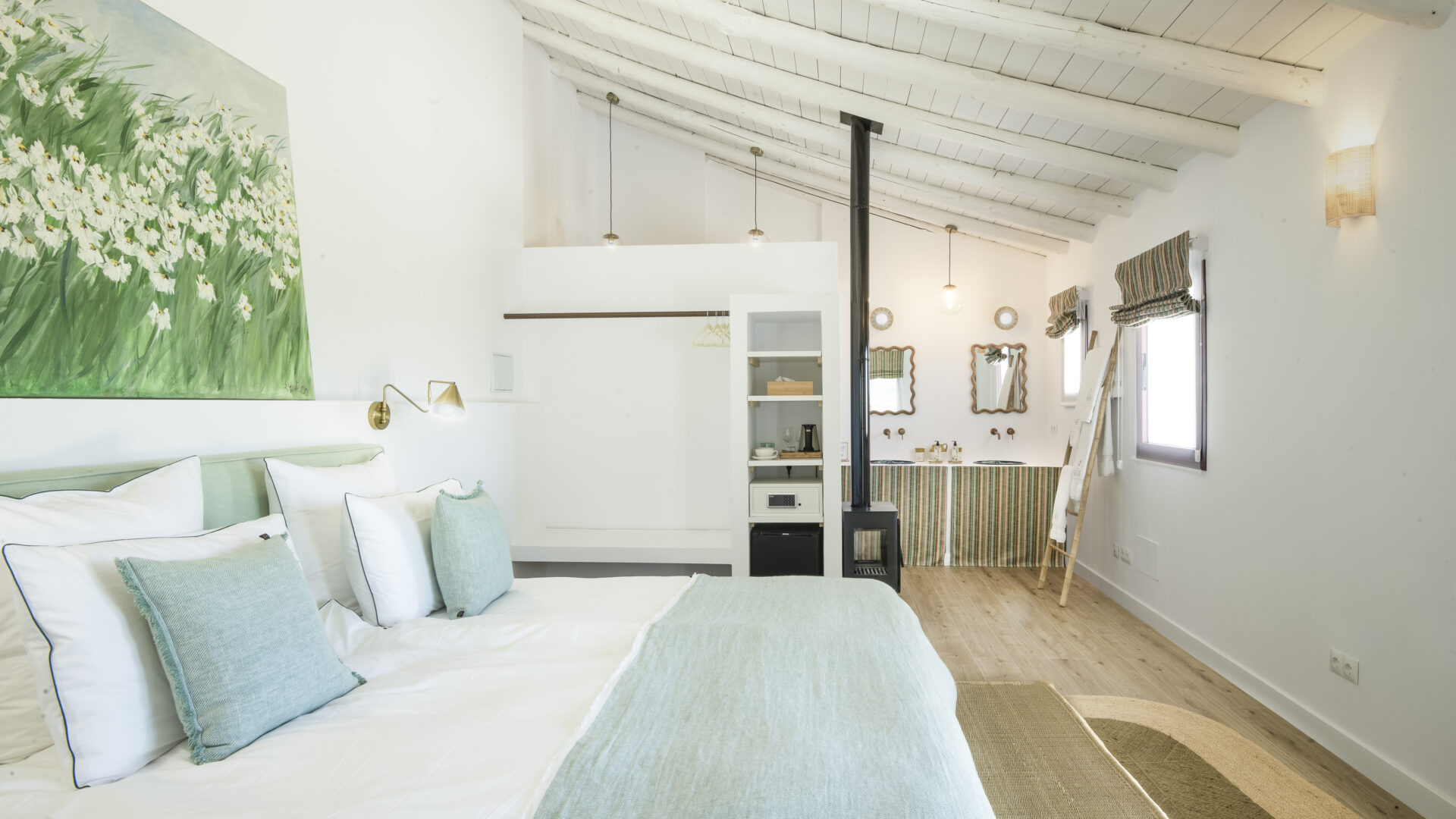 • The 5 rooms with different color themes are different sizes and can accommodate 2-4 people. All have en suite bathrooms, some also have a wood-burning stove, a private terrace or balcony, and all are equipped with air conditioning.