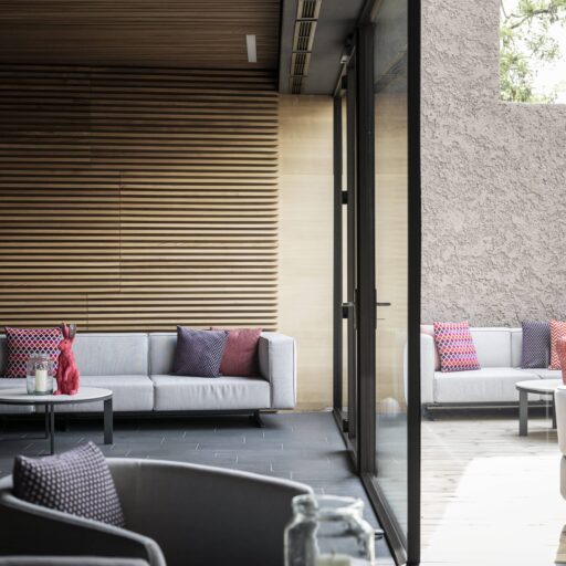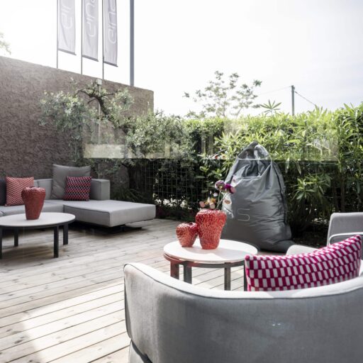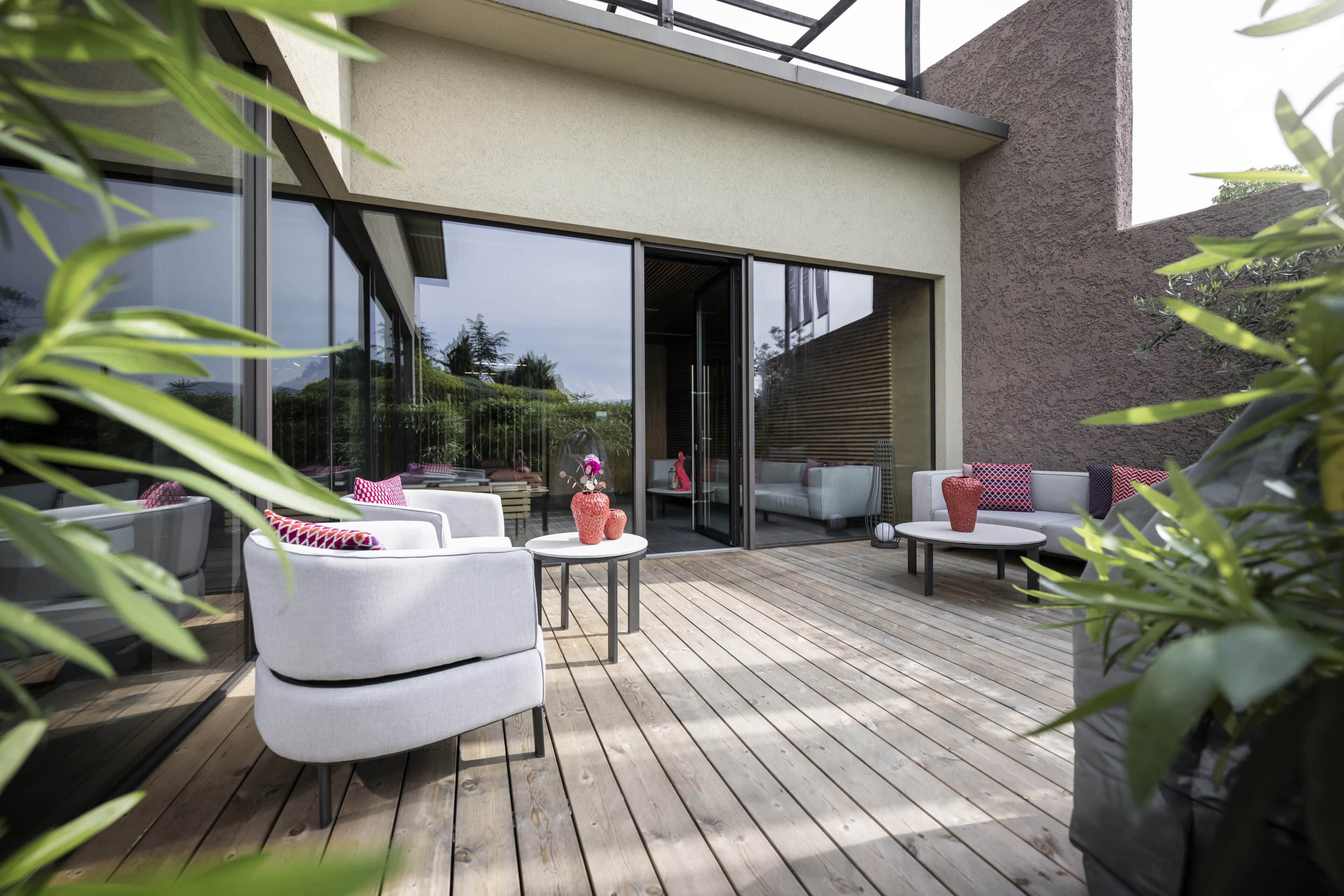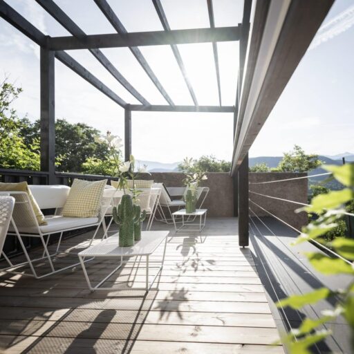 - The private, cozy terraces in the apartments La Diffusa, with a view over the roofs and to the mountains