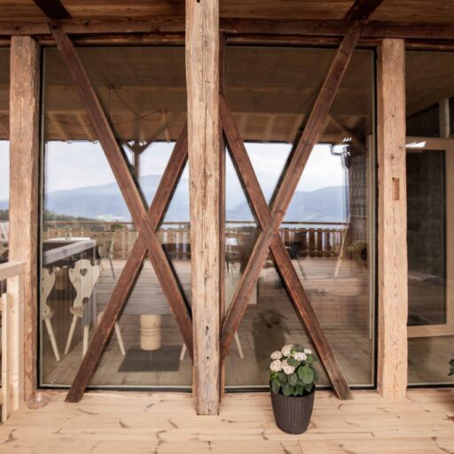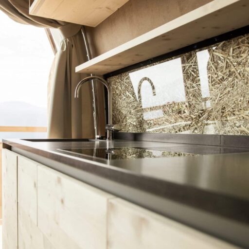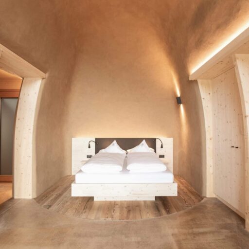 Szilvia and Reinhard Rauter have fulfilled a dream in the heart of South Tyrol. In 2010, they took over Reinhard’s parents’ farm and have been managing it ecologically ever since. It’s a farm straight out of a book: Dairy cows and young cattle stand in the barn, chickens and ducks strut (or waddle) around freely. Cats roam the farmyard and, of course, there’s also a farm dog—Leo watches over everything! While Reinhard as a farmer keeps the farm running, Szilvia mainly takes care of the guests, because the farm also includes the barn—the “Stadel” houses four pavilions that they built using completely traditional and ecological building materials. The four accommodation units “Fire, Earth, Water, Air” are like well-being capsules, an arch envelops the living and sleeping spaces up to the large window front. Since Szilvia also works with alternative healing methods, she has a knack for the right energy; peace and mindfulness are definitely close to both of their hearts—you can tell. They describe Dietrichhof as a “special place”—and we can honestly say that they’re right!