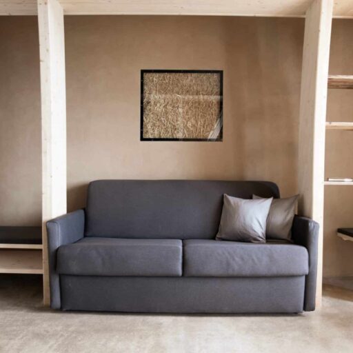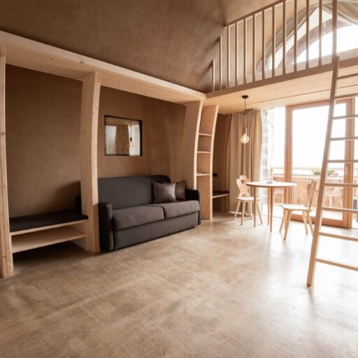 - The living capsules are made of straw, wood and clay—a super ecological construction! They make you feel comfortable and secure, like being in a cocoon.