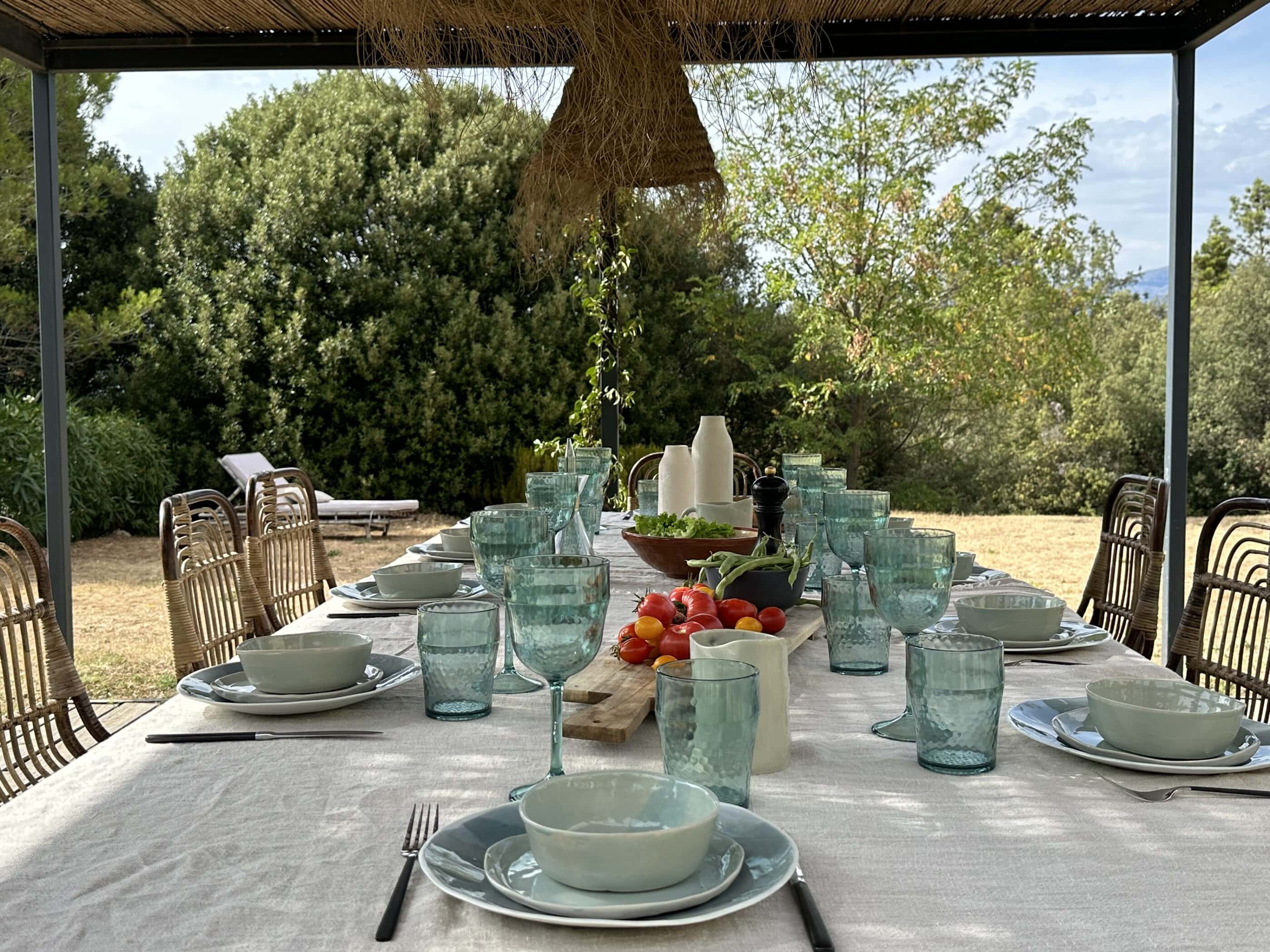 - Which bottle will we crack open tonight? The long table under the thatched roof in the garden is perfect for balmy evenings with fine wine and good conversation.
