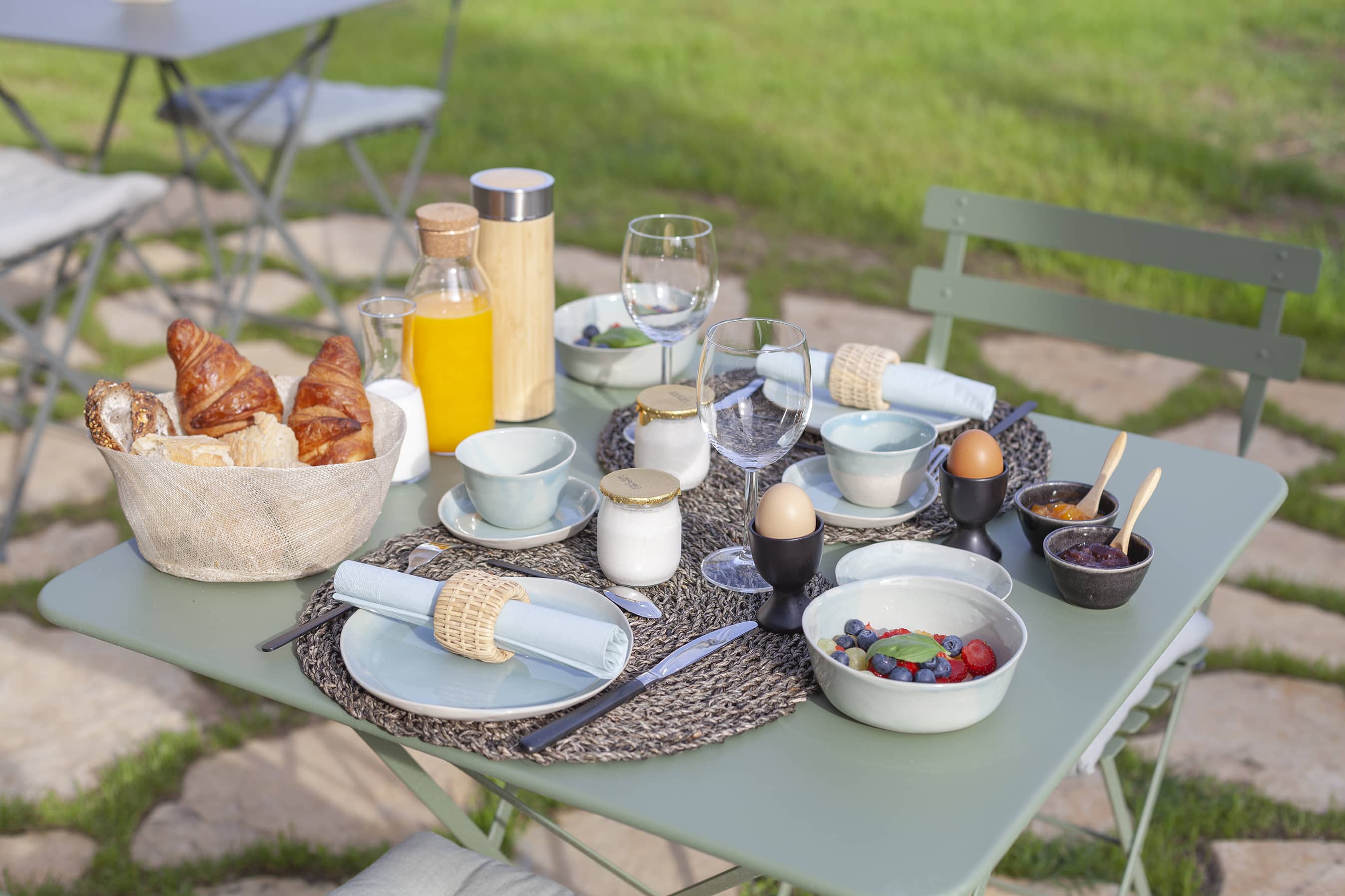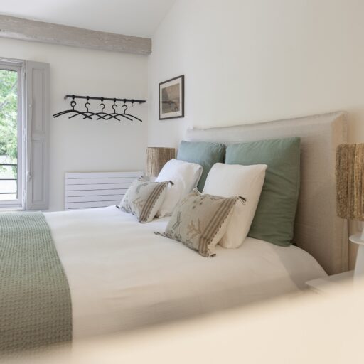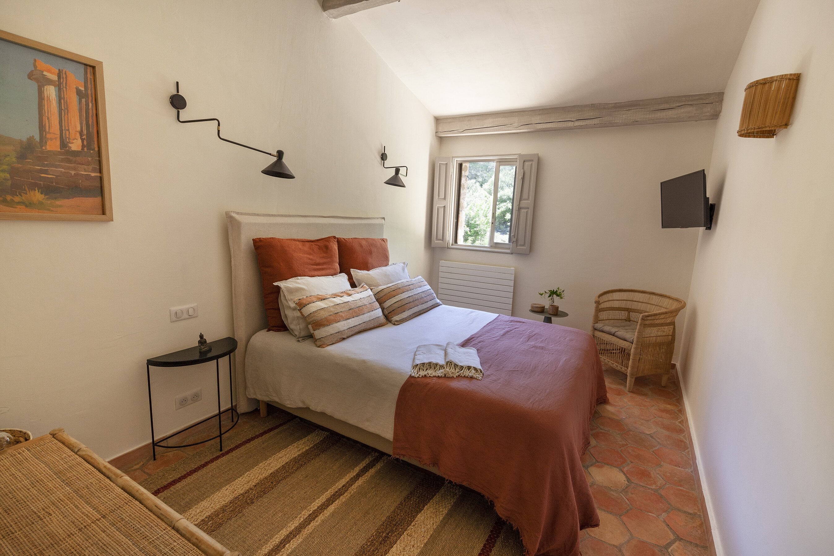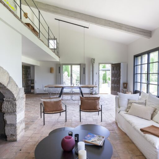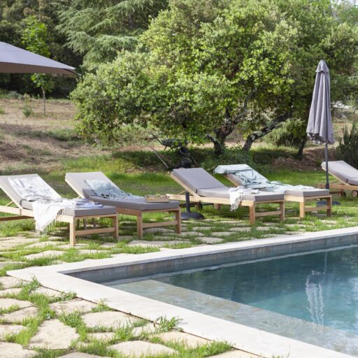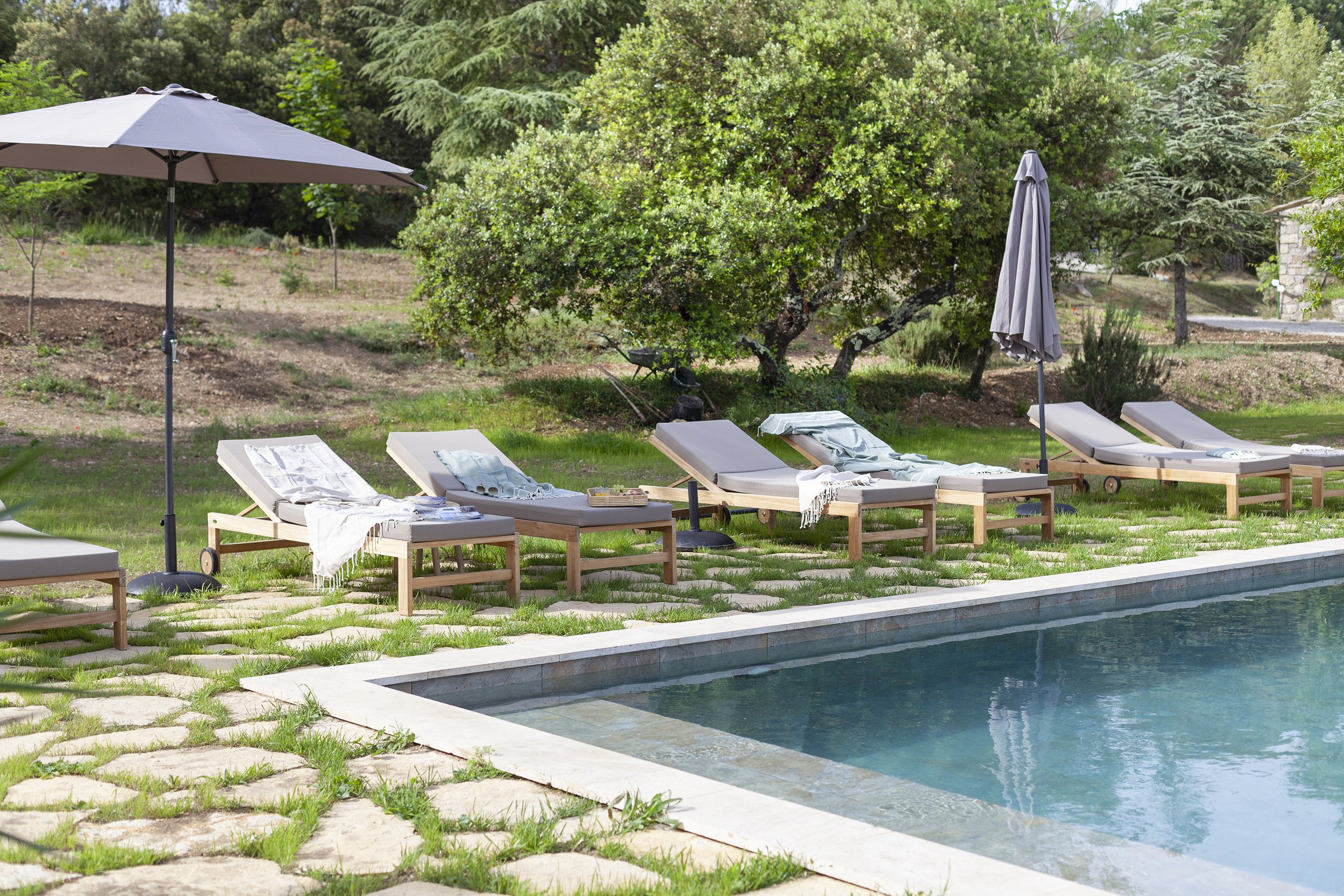 As you approach your destination along the winding gravel road, between densely wooded hills looking towards the foothills of the Alps, the view becomes more beautiful with every meter you climb and you know that something special awaits your arrival. Surrounded by ten hectares of land, the Provençal farmhouse is situated on a plateau in the middle of the Préalpes d’Azur Nature Park. Owner Stéphanie Larguier had lived here with her family for fifteen years. When her children moved to the city to study, she wanted to share this magical place with others. We think it was a great decision. A loving renovation has created the house of her dreams and a place that fulfills many peoples’ idea of the perfect romantic retreat in the countryside. Five spacious, bright guest rooms are located behind the rough stone walls, decorated in earthy tones inspired by the surroundings. Boho-style accessories, handmade floor tiles and antique Spanish doors add an individual touch. The surrounding park with pine, oak and olive trees is home to many species of birds and wildlife. Busy bees produce delicious honey and free-range chickens provide fresh eggs for breakfast. Scattered throughout are communal areas where you can meet and share your day with others: A living room with kitchen and fireplace, a small lounge, a terrace, a heated swimming pool and a large pétanque court. More than enough for a wonderful vacation. And we haven’t even mentioned the heavenly Mediterranean scent of lavender, rosemary, and broom …