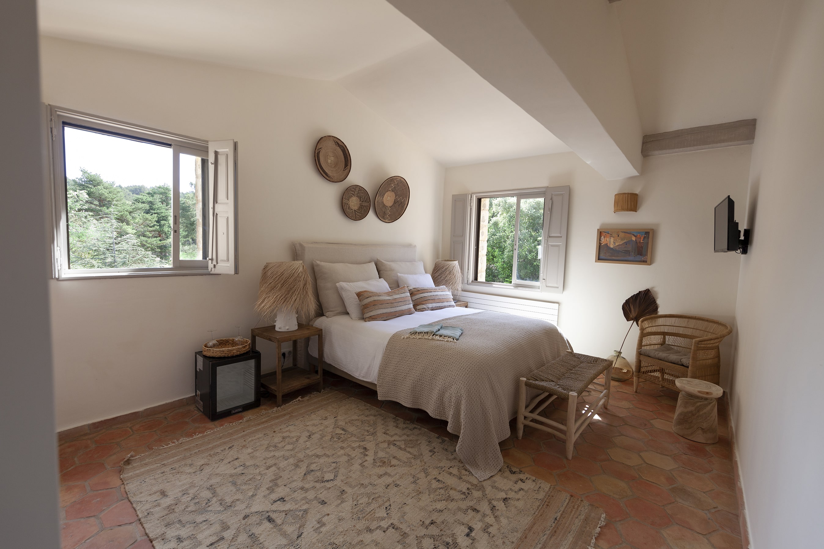 - The contemporary design of the rooms: Natural tones, boho style and modern bathrooms