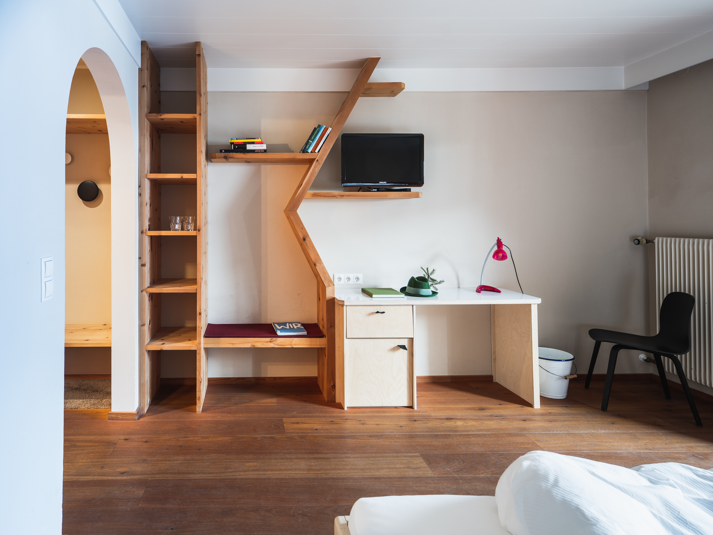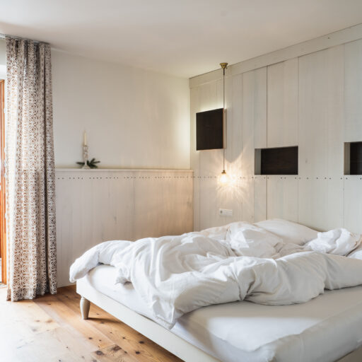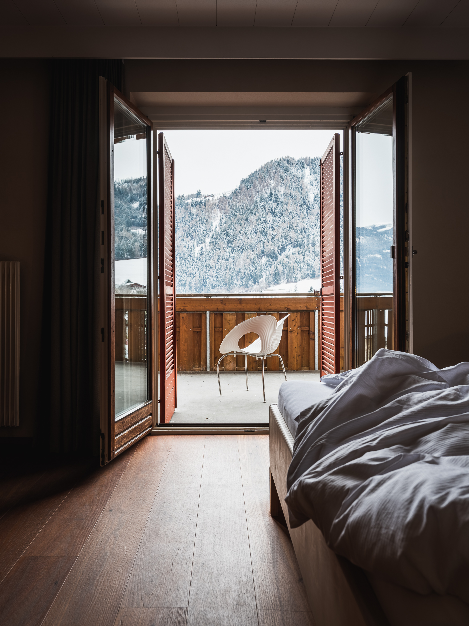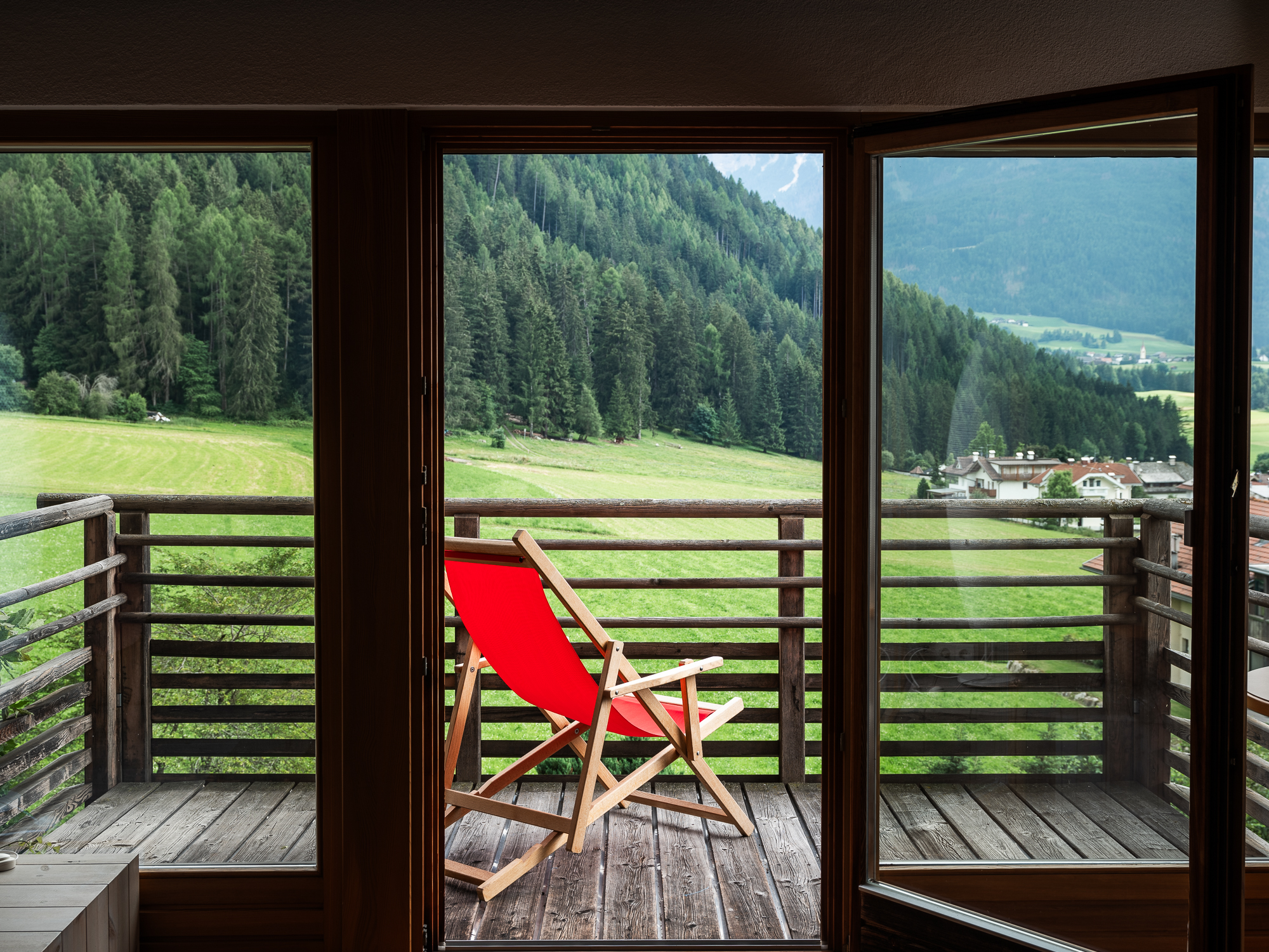 At first glance, you might think that this two-part building with its wraparound balconies, wooden elements, and mountains in the background is a traditional South Tyrolean inn. However, if you take a closer look, you’ll quickly realize that this hotel on the edge of the village of Rasen-Antholz can’t be pigeonholed; it has its own unique personality. This isn’t just a place you’re checking into, but a whole journey of discovery—one that will leave you marveling at how casually and effortlessly different styles are combined. Inspired by their travels, globetrotters Katja and Stefan set about redesigning the hotel, which has been family-run since 1968. Its new look is urban and creative, yet also a little quirky. Mid-century cocktail chairs, heavy velvet sofas and rustic furniture, contemporary art and the scent of Swiss pine—Frida am Wald unites all of these features to create a wonderfully cohesive whole. The interior marries traditional and modern elements, using muted tones in some places, and intense, bright colors in others—it’s simply full of surprises! The rooms are individually designed, but they all tell a story. And each one offers a great view of the Dolomites mountain landscape, rugged cliffs, the deep green of the forest or gentle meadow slopes (making you want to go on lots of nature adventures!). The hosts describe the place they’ve created here as ‘a grab bag that bursts in your hands and showers you with stars.’ Who wouldn’t want to experience this magic?