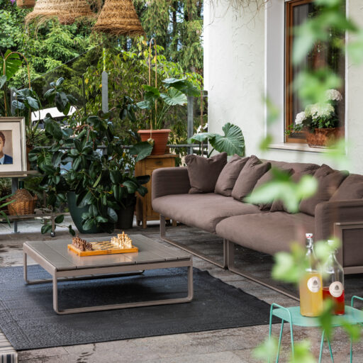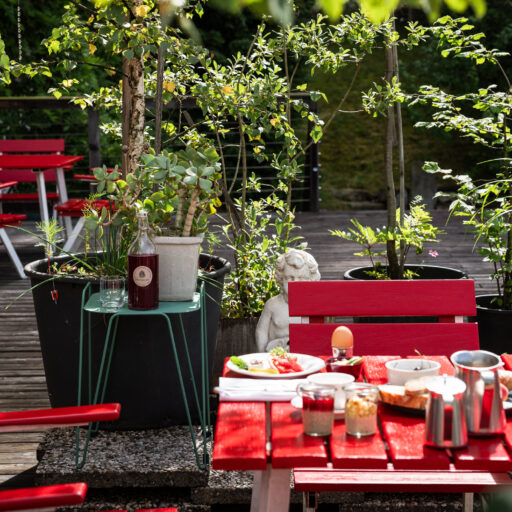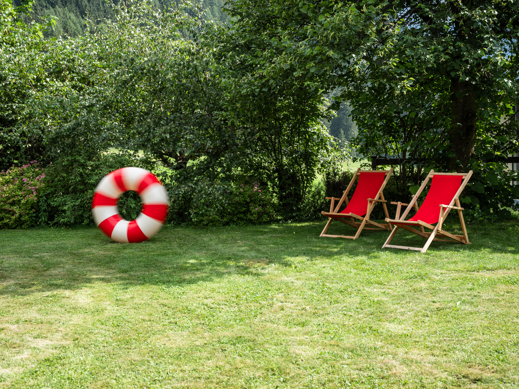 - The garden with its fantastic view of the mountains. In summer, you can put your feet up under Hawaiian parasols.