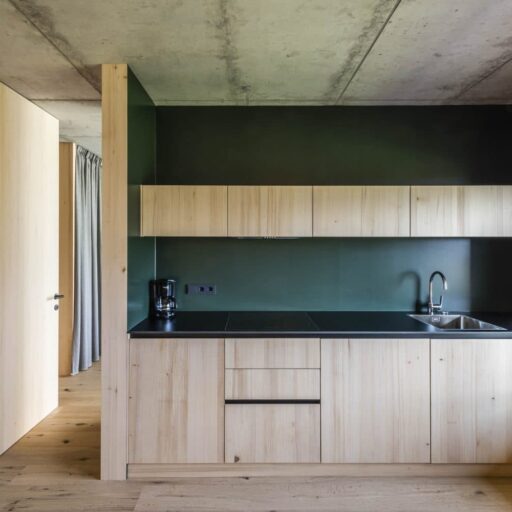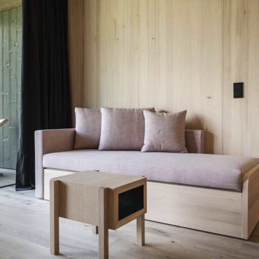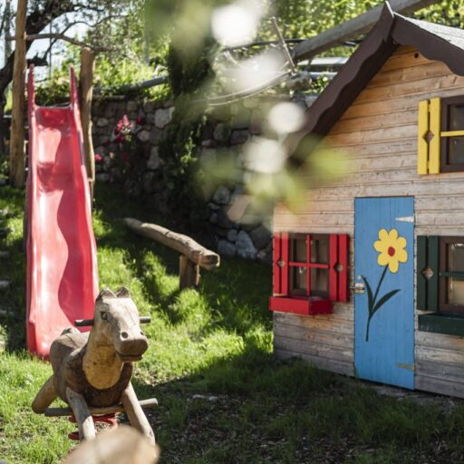 In the midst of apple orchards and vineyards lies a small paradise for all those who love the real country life. The Füchslhof, in the small municipality of Marling west of Merano, is run by the Wolf family. It invites you into the enchanting village idyll and to experience the hustle and bustle of a farm up close. The names of the 70 or 90 m² flats alone speak for themselves: Olive Grove, Vineyard, Herb Studio and Far View. They conjure up picturesque images – and that is exactly what awaits you. The scent of herbs and flowers pours in thorough the open windows, which offer a view of a fabulous mountain panorama. Steel, concrete and a lot of wood transform the interiors into a farmhouse parlor 2.0, where modernity, comfort and tradition are so intertwined that you can instantly feel at home and let yourself go. One highlight is the Zirmstübele, a room made entirely of local Swiss stone pine. It can be used as a cozy retreat, but is also perfect as a second bedroom or children's room. Since the Füchslhof is a place for the whole family, there is also an outdoor pool, a playground for little adventurers, and a beautiful garden where there is always something new to discover – fruit, vegetables, flowers, herbs, berries ... Enjoy the peace and quiet, recharge your batteries, or let your mind wander. One thing is certain – everyone will find their own special place at Füchslhof, and find themselves wanting to want to stop time for a moment ...