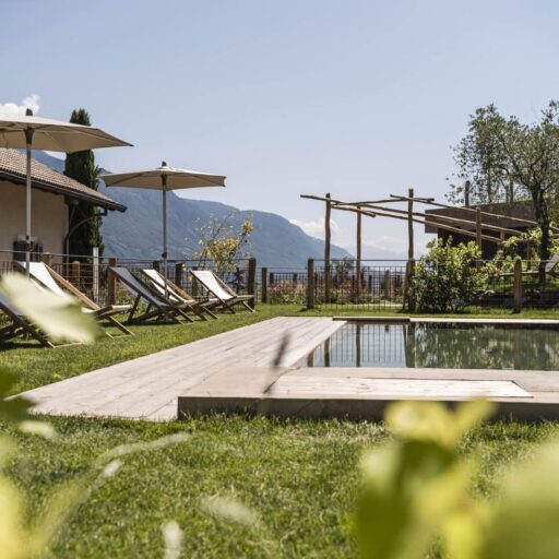 - Pure relaxation: the quiet location amidst the orchards and vineyards with a fantastic view over one of the most beautiful areas of South Tyrol makes it particularly easy to switch off; the saltwater pool and the panoramic lawn with sun loungers are highly recommended ...