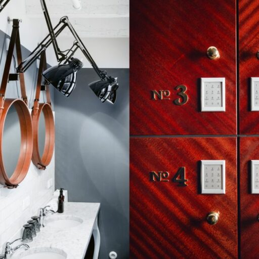 • den Schlafsaal aus dunkelrotem Mahagoniholz, in dem man sich wie im Orientexpress fühlt, das Gemeinschaftsbad mit Regenduschen, Schreibtischlampen und Lederspiegeln
