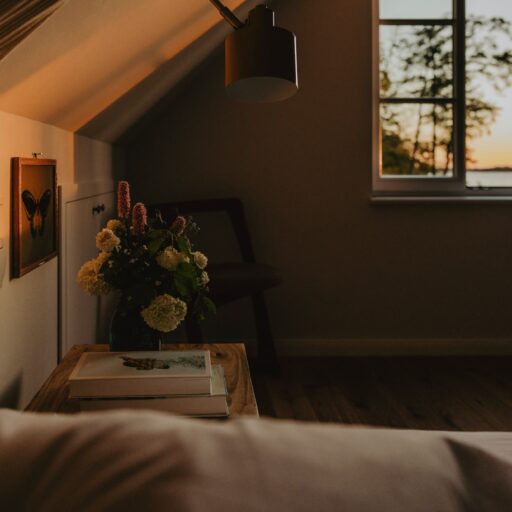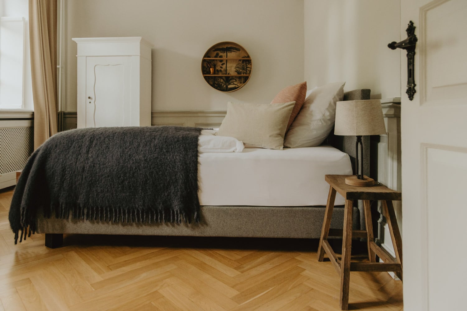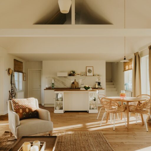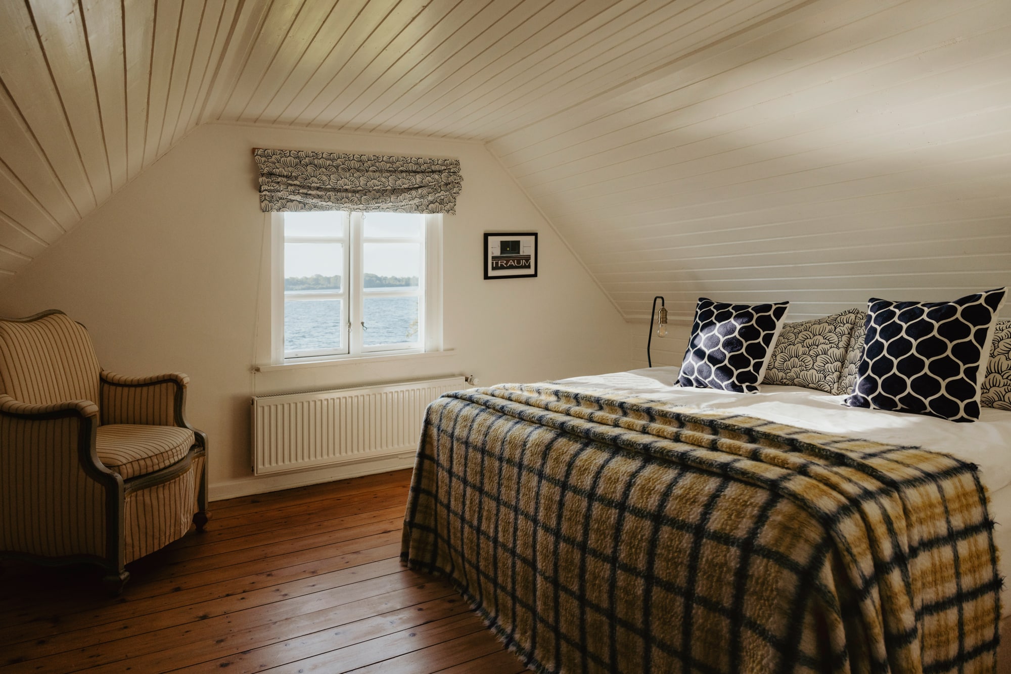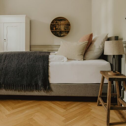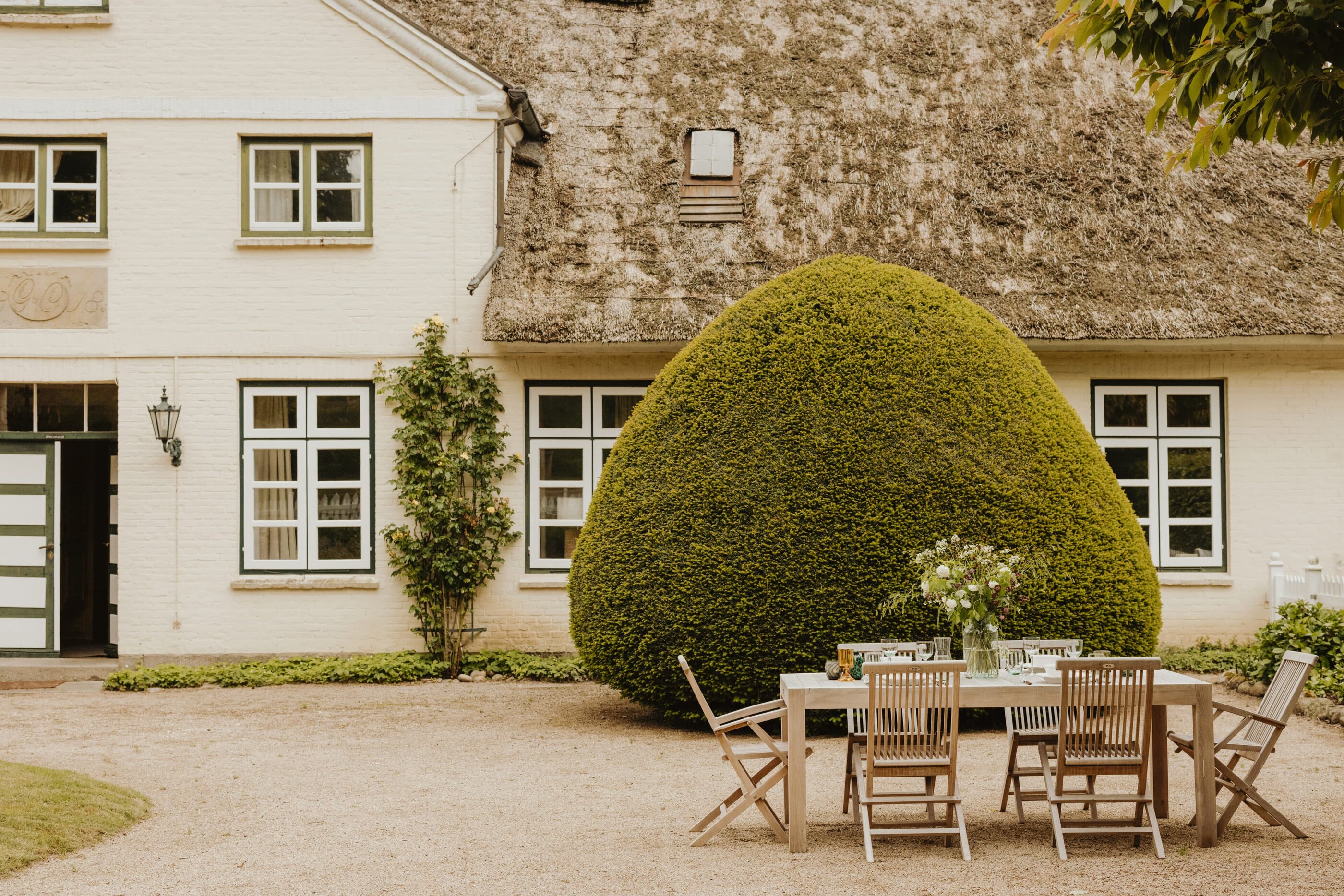 It’s one of those places that reminds us how good it is to spend time surrounded by nature. How delicious apples taste when we pick them fresh from the tree. The scent of wildflowers, the feeling of a morning dip in the lake or a long fall walk. The journey alone offers us glimpses of beauty. All around are dense forests, fields and meadows and grazing horses. Ancient oak trees line the avenue that leads to the ensemble of white houses. Arrive and breathe in the country air! Gut Nehmten, family-owned since 1768, is located in the conservation area directly on the shores of Lake Plön in Schleswig-Holstein. Four boutique apartments have been built here since 2022, all full of rural comfort, historic details, cozy corners with armchairs and sofas and high-quality fixtures and fittings. The two-story Backhaus with its three bedrooms and the small Seehaus for two people are the place to be for anyone who likes to be as close to the water as possible while enjoying the view over the deep blue lake from their own terrace. There are also two vacation apartments in the Alte Meierei: One with particularly beautiful original elements such as a stone floor, cast-iron pillars and industrial-style lattice windows, the other featuring oiled floorboards and a loft character. They’re all furnished differently, but probably the best thing they all have in common—apart from the stylish interior—is a fireplace in each accommodation where you can listen to the fire crackling. When you’re lost in your own thoughts in the tree swing on the shore, enjoying food straight from the barbecue under old trees on a summer evening or encountering an otter while paddling, it soon becomes clear that great happiness can be found here, above all, in the simple things.
