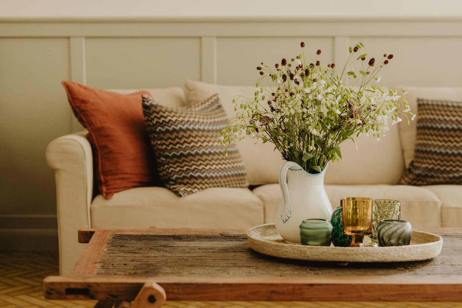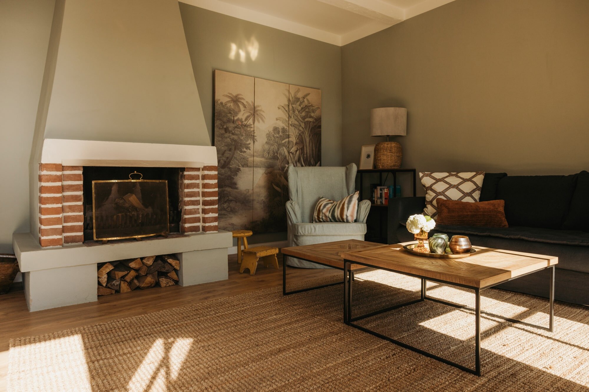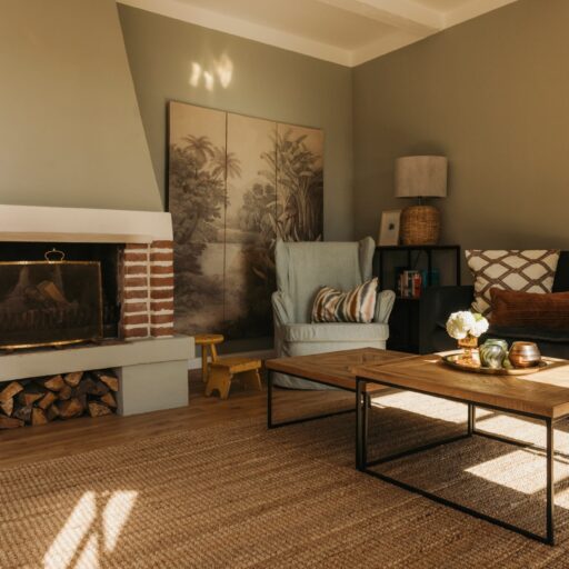 • The design in harmonious natural tones evokes the colors of the local landscape and is combined with home textiles in bolder shades.