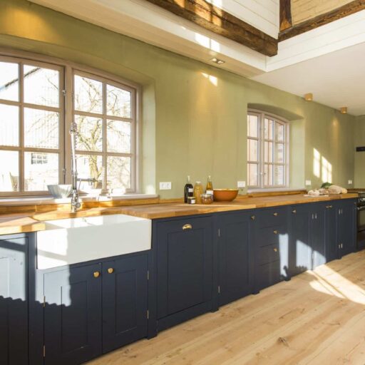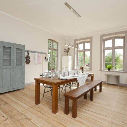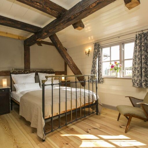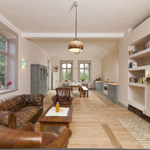 Bettina Buschow and Patrick Oldendorf were actually looking for a small weekend cottage when they discovered the Gutshaus Lexow in 2007. The windows were boarded up, the roof was full of holes and the garden was overgrown. And it was much too big for a weekend house. But the beautiful fields and forests surrounding it, and the lakes! The endless expanses of the Mecklenburg lake district quickly won their hearts. And on top of that, the house’s incredible potential ... Bettina and Patrick quickly realized that their discovery of the manor house from 1874 would turn their plan for an idyllic family home into an extended adventure. During the renovation of the listed building, old substance was carefully restored and a few treasures, such as the old shutters on the first floor, were discovered and saved. The slate roof and façade have been restored to their original splendor, and floor-length window slits with a view of the garden added. The subtle pale pink, light gray and olive green interior color scheme feels modern but is historically accurate. All apartments are impressively spacious with open plan living, cooking and dining areas ¬ perfect for families and larger groups. Cozy bed & breakfast double rooms are available next door in the Old Kitchen. Each apartment, each room has its own character: antique cabinets, 60s furniture and contemporary pieces are skillfully combined, all with an eye for the essentials so that you take home plenty of ideas. The bright hallways, bathed in friendly light falling through the numerous windows, are particularly inviting. Stressed city dwellers can unwind in the 6000 m² garden with its old fruit trees and two huge, shady chestnuts.