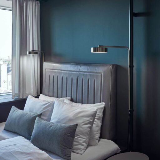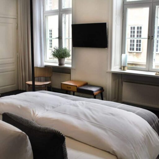Das Hotel Denmark gehört zu der dänischen Brøchner Gruppe, die bisher fünf Boutique-Hotels in fünf verschiedenen – allesamt sehr lebendigen – Kopenhagenern Stadtvierteln führt. Sie alle haben etwas ganz Eigenes und sind umgeben von Läden, Restaurants, Bars und Cafés, – perfekt, um sich ins bunte Kopenhagener Stadtleben zu stürzen. Das Hotel Danmark hat insgesamt 88 Zimmer in zwei Gebäuden, eins von 1792 und eins ein paar Jährchen jünger, von 1969. Hier hat Architekt Morten Hedegaard Hand angelegt und der Fassade einen neuen und modernen Look verpasst. Den gibt es auch innen mit einem Stil-Mix aus skandinavischer Klarheit, Midcentury Design und modernen Klassikern. Sehr elegant und gleichzeitig sehr modern, stilvoll und lässig – ganz wie man sich Kopenhagen vorstellt.