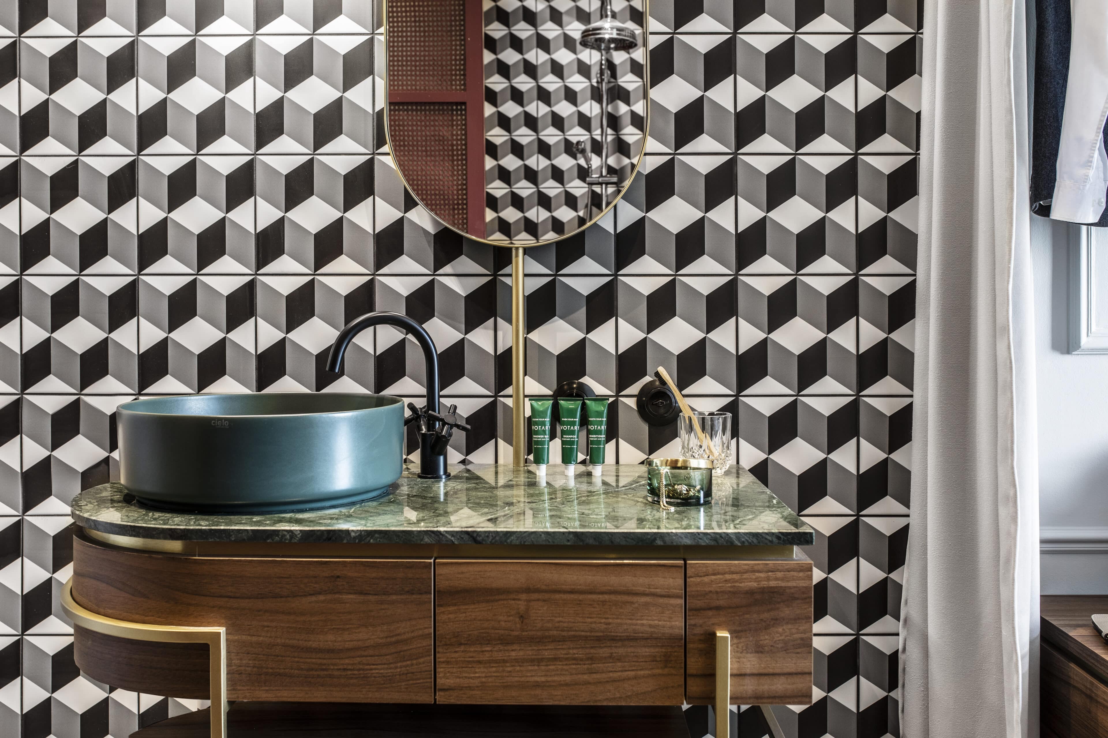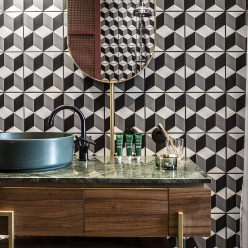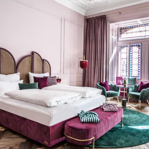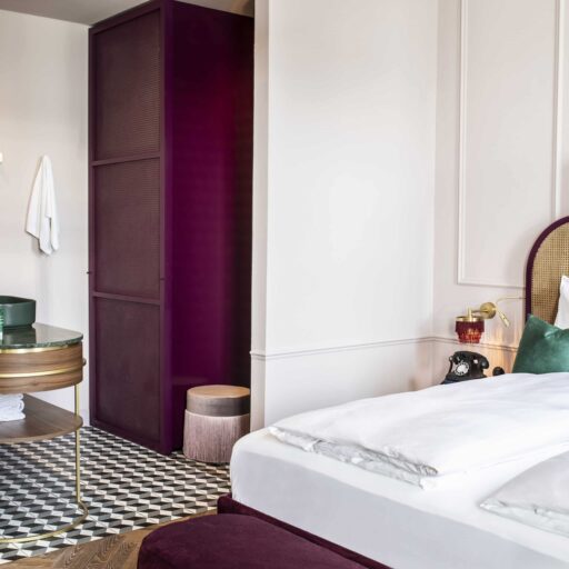 One minute you’re in the here and now, and the next you’re stepping over the threshold into the glitz and glamor of the 1920s and 1930s. With a snap of the fingers, ‘Die Josefine’ in Vienna’s 6th district Mariahilf can catapult you into a bygone era. The hotel’s motto, “Come in, switch off and forget the outside world,” isn’t a promise too far. The 49 rooms are divided into seven categories. They range from the cozy single room in modern art deco design and the open double room with a view of the garden through to the two duplex suites with a roof terrace and breathtaking views over Vienna. The furnishings are as luxurious as you could hope for—chandeliers, purple and turquoise velvet, retro phones, 3D-effect tiles, surrealist art and so much more. And as befits the era, you can also fully immerse yourself in the nightlife at Barfly’s Club awaiting you in the basement with the best bartenders in town. Velvet-covered bar stools and sofas, walls of green marble, mirrors and brass, long drinks and cocktails invite you to indulge in the Dolce Vita. A motley ensemble with a special charm that’s entirely reminiscent of the namesake herself—After all, Josephine really existed! Josephine de Bourblanc was the name of the young aristocrat who, fleeing the Russian Revolution, found a home in this small Viennese hotel. She enchanted guests with poems and stories, transporting them into the world of surrealism leaving behind the magic that can still be felt today. Hotel Josefine is not only a place where you can sleep really well, have breakfast and just be, it’s a place for a particular way of relaxing, for thinking and a bit of time travel in equal measure.