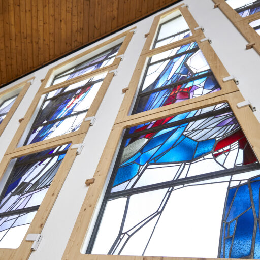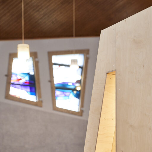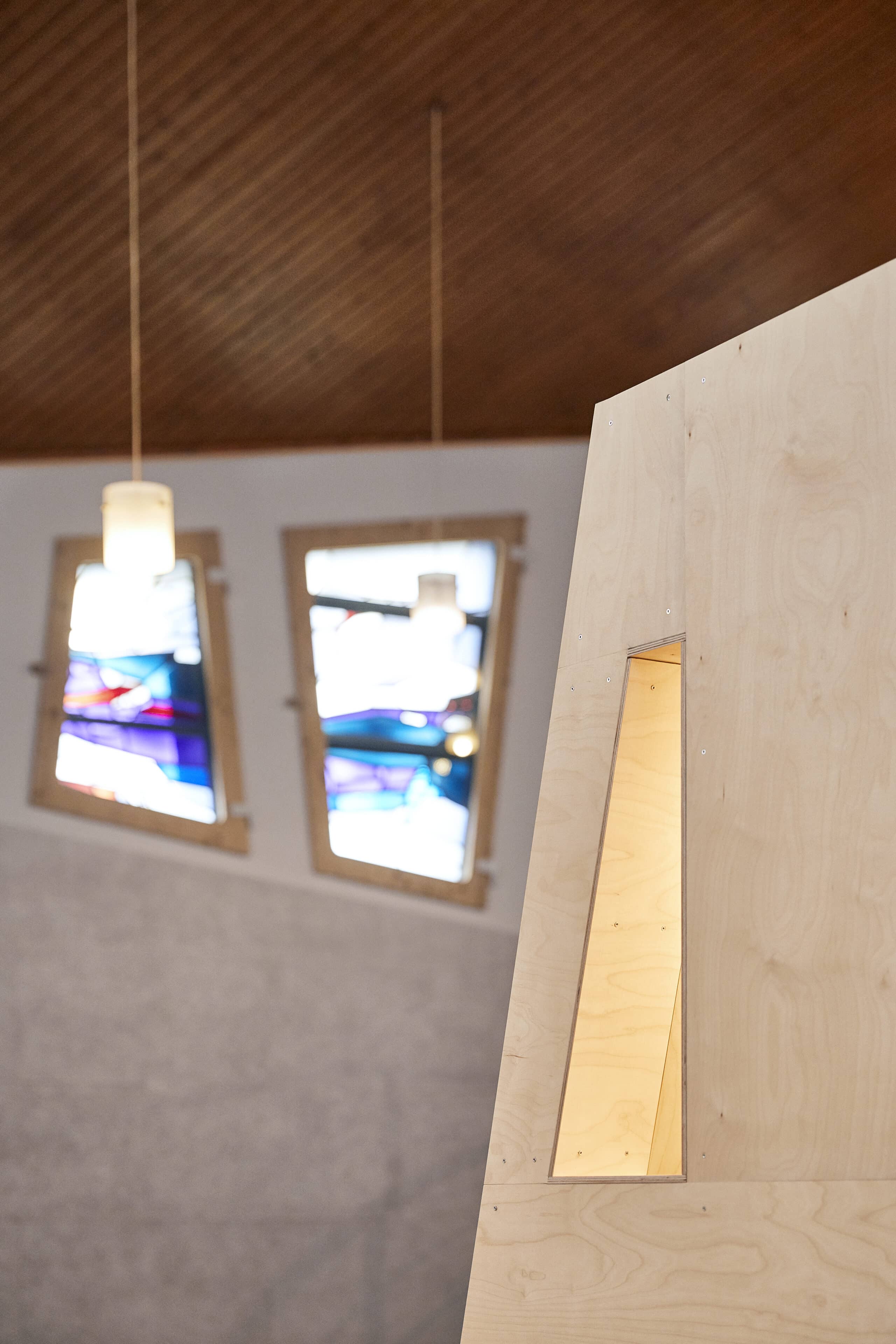 - The understated furniture that allows the magical light, which changes depending on the weather, time of day, and season, to take center stage. Inspired by a scene from the Gospel of John, the colorful windows are intended to show the flow of water through the Sauerland mountains.