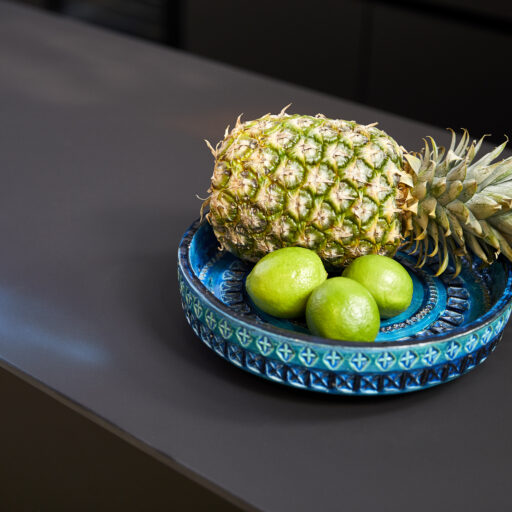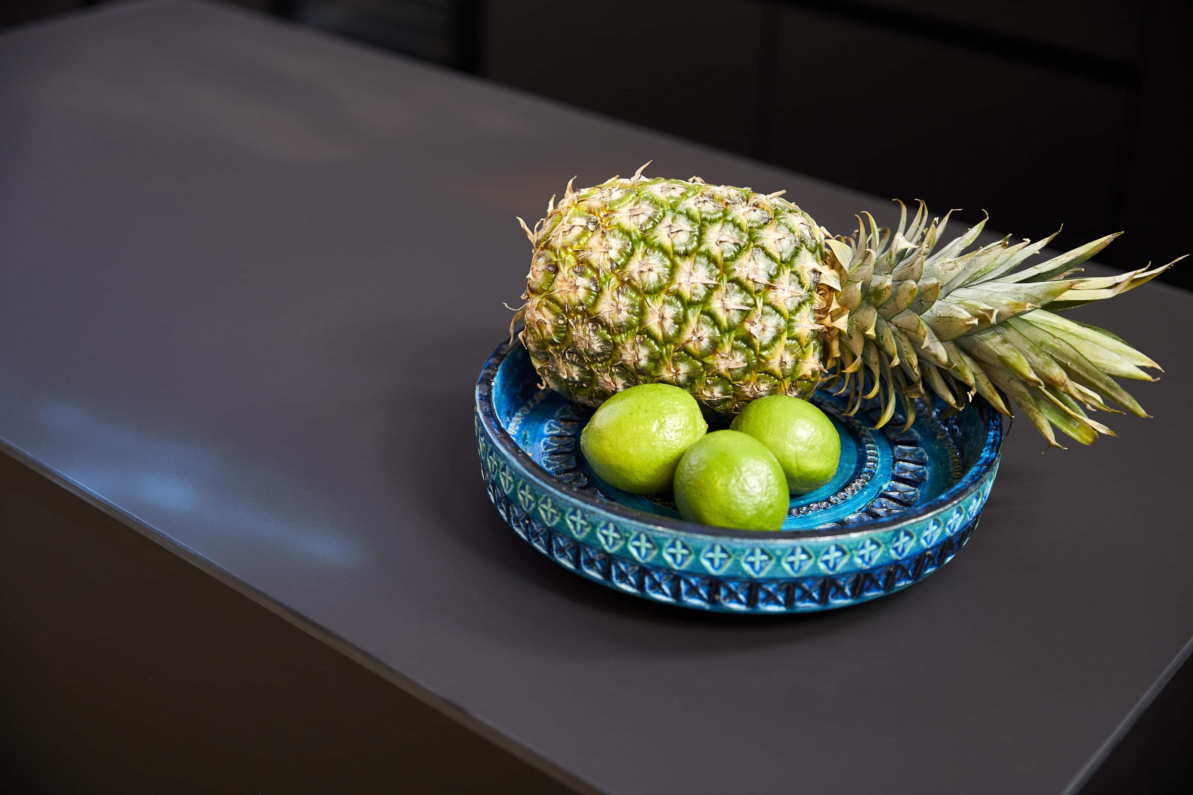 - We like how the different living areas have been integrated into the huge space. The matte black kitchen with dark wall tiles and a long dining table placed on a wooden platform is a real eye-catcher.