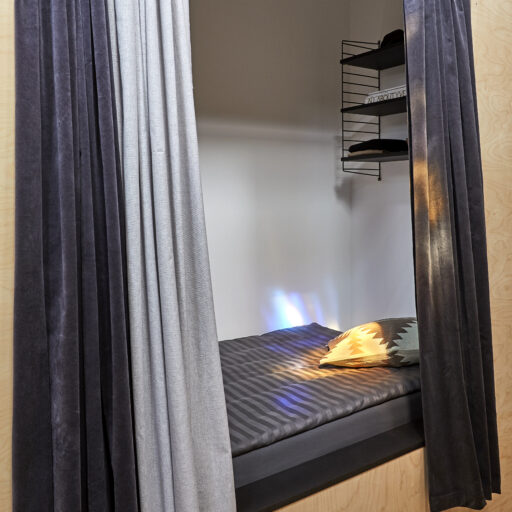 - The combination of open design and sleeping cubes offers many opportunities to get together or be alone, a perfect mix of cozy and spacious.