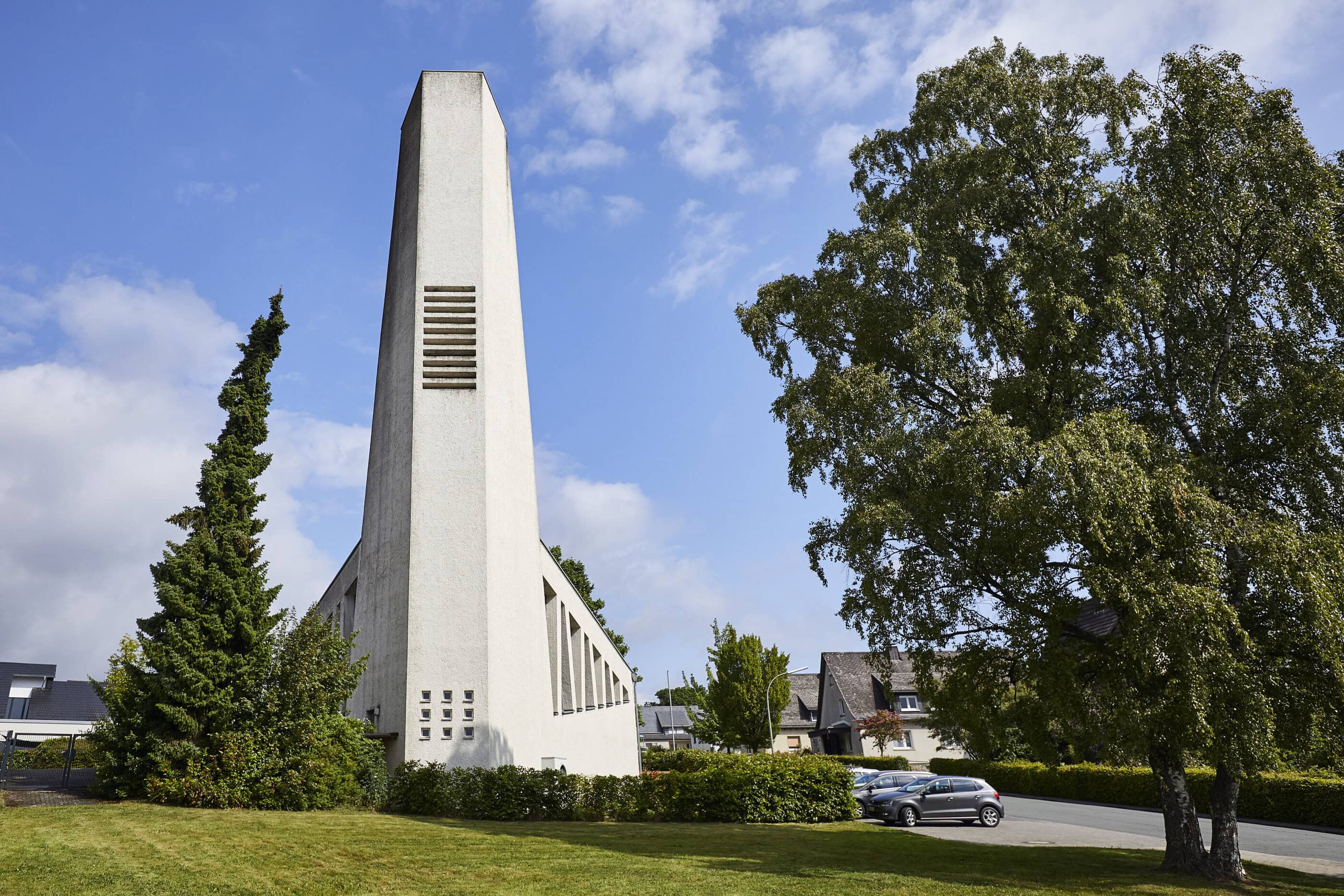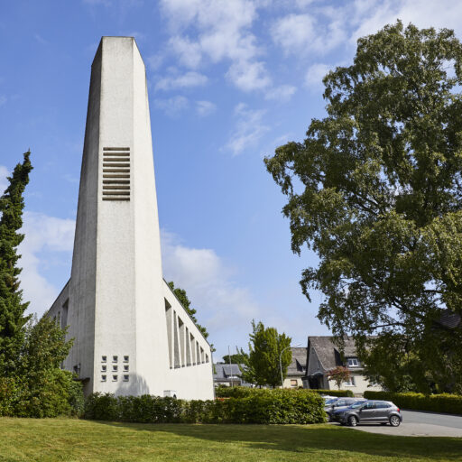 - The former church’s unconventional design. When it was built, the architecture was very modern, but today the reinforced concrete skeleton structure exudes retro charm.