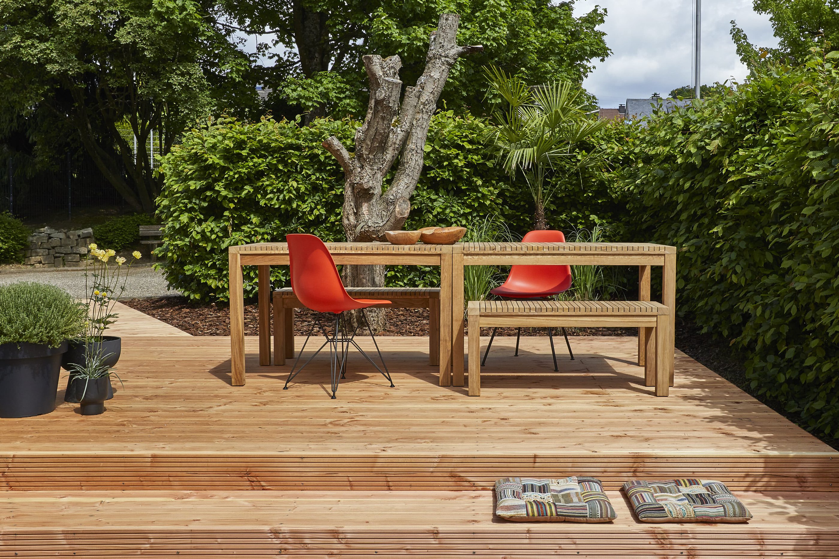 - The beautiful outdoor area features a flower meadow and lawn with a sun deck, protected by a hornbeam hedge.