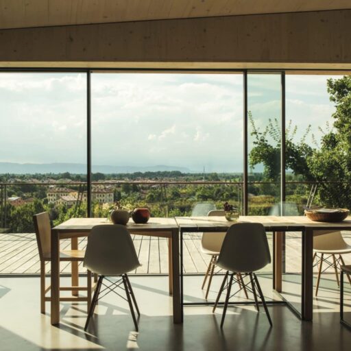 Iron, concrete, wood – a lot of the latter! These are the materials that were used to build La Mugletta in its original form. What this has resulted in is a jewel in the hills of Veneto, located in the Colli Euganei regional park in Teolo, a small community of 9,000 inhabitants. It soon becomes clear that nature and the environment play a significant part here: the larch wood cladding on the façade comes from native woodlands, and an immense garden, home to donkey and chickens, surrounds the house. A wonderful woody fragrance lies in the air. The property was intended to be a place where nature and architecture merge. This has indeed become a reality. Archilovers justifiably awarded the state-of-the art B&B as Best Project in 2017. Aesthetics, functionality and creativity merge together fluidly. What’s more, La Mugletta also paves the way for eco-friendly living: the entire property is self-sufficient in terms of energy. Cooling in summer, heating in winter and the hot water are all generated by a geothermal system with two probes. As a guest you’ll be treated with a quiet environment, a breath-taking panoramic view of Monte Rosso, lots of verdant areas and a family atmosphere. This is felt particularly at the heart of the building – the salotto with the kitchen, terrace and plenty of space for breakfast or gatherings. La Mugletta is a fabulous place that holds a nurturing spirit, the effects of which linger on long after your stay. Ulla and Eberhard play a major part in this – wonderful hosts who intuitively know what their guests need most. Almost like in a fairy tale, just in real life.