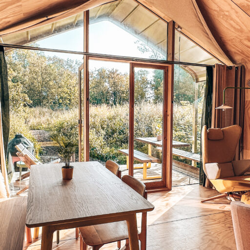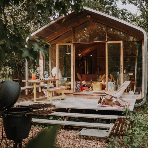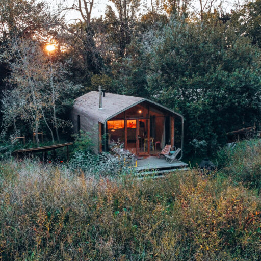 Nestled between dense trees and tall wildflower meadows, the charming cottage village of Les Cabanes d’Ostende awaits discovery! Nine luxurious chalet-style accommodations are set within a landscaped park in the Belgian coastal town. Although conveniently close to the town center, the glamping spot feels wonderfully far away from it all. Whilst well secluded, the cabins have nothing to hide—owners Youri and Natacha proudly describe them as “the most beautiful in the world,” and stepping inside, it’s easy to see why. The interiors are designed for both comfort and style, with curved bentwood cladding creating a cozy atmosphere. Muted natural tones, greenery, soft sheepskins and inviting armchairs add to the warmth. The custom-built kitchens make exceptional use of space. Without sacrificing modern comforts, guests can enjoy the feeling of being immersed in nature. The best place to experience this is on the terrace—wrapped up in a blanket, under the evening sky, counting the stars, listening to the rustling of the trees and breathing in the fresh sea air.
