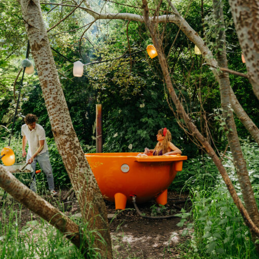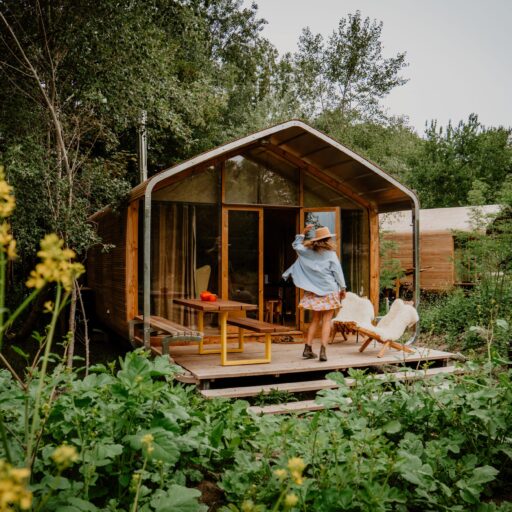 - Built with sustainability in mind, the cabins are “wrap houses”, made from 24 layers of recycled cardboard.