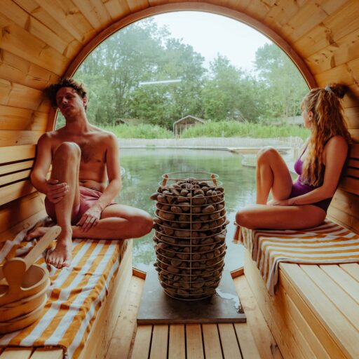 - The simple, but really good, wellness concept with swimming pond, panoramic sauna and wood-fired whirlpools, available in select cabins