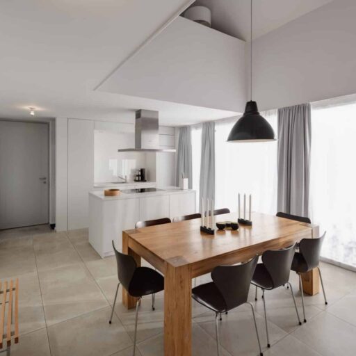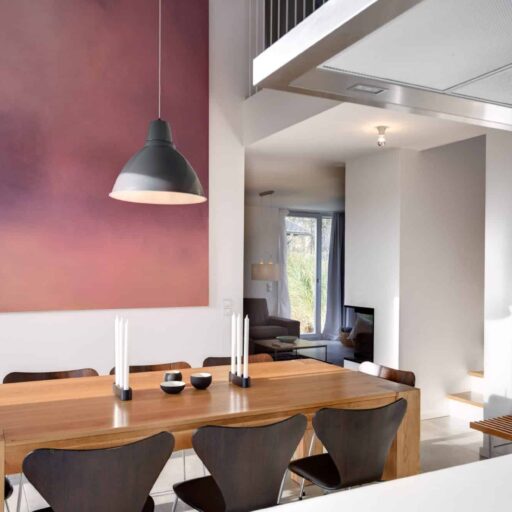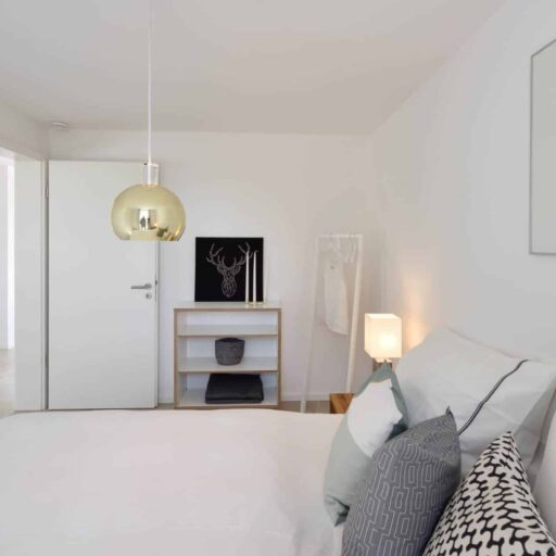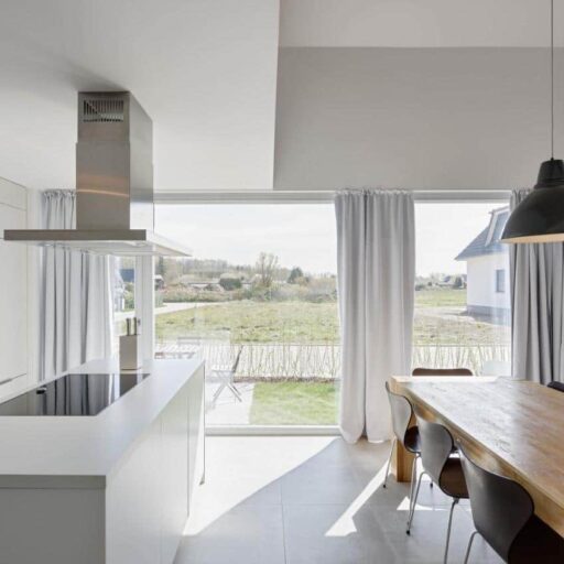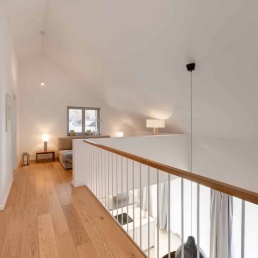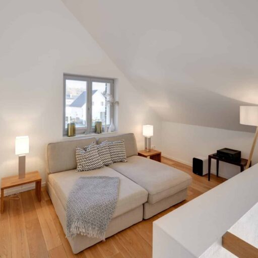 A solid building made of concrete, an untreated larch wood façade and a composed interior in Scandinavian style. The house Lillesol inspires with its aesthetic simplicity – lots of glass, lots of wood and lots and lots of space. Idyllically located between sea waves and forests, it is on the very edge of the Wittow peninsula, just a few minutes from the fine sandy beach of the Baltic Sea. The holiday dream was designed by the architect Peter Dobelstein, who himself lives on the island of Rügen. This local connection was particularly important to Michaela Fasold and her family, the hosts of the house. In the same vein, only tradespeople from the immediate vicinity were commissioned (and each of them individually). The ground and upper floor accommodate three bedrooms, a spacious living and dining area and two bathrooms. The interiors with their calm colour tones, appealing wall paintings and high-quality solid wood furniture in wild oak quieten the mind. Everything harmonises perfectly with the minimalist language of form. The huge window fronts on the first floor provide a view across the beautiful baroque Juliusruh park and also allow plenty of light into the interior. Anyone visiting will immediately realise why the house is called Lillesol. Translated from Swedish, the name more or less means “little sunshine” – and indeed, the house Lillesol doesn’t only let the sunshine in, but also has the guests’ eyes shining!