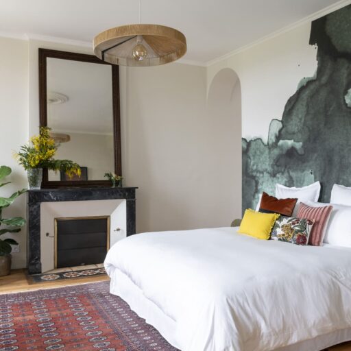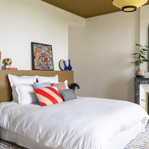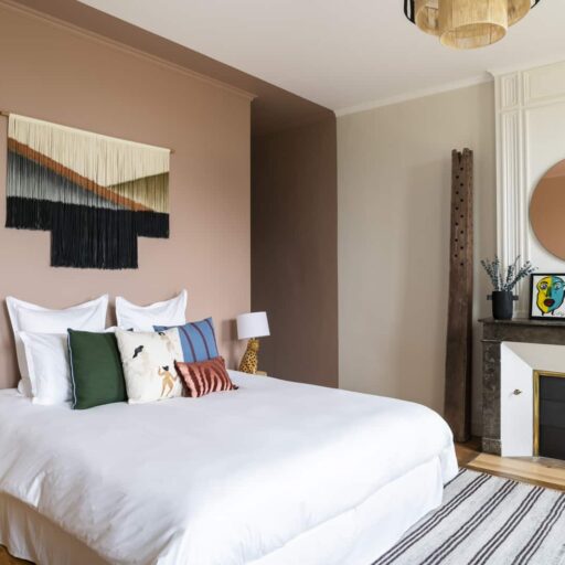 - The house accommodates three guest rooms, which are between 32 and 35 square meters in size. ‘Palmier’ is an ode to the Washington palms that have stood in front of the house for more than 70 years, beige and blue tones mixing with colorful decorative items. ‘Figuier’ combines powder rose with green. ‘Pin’ is in shades of green and sand, underlined by accents in black.