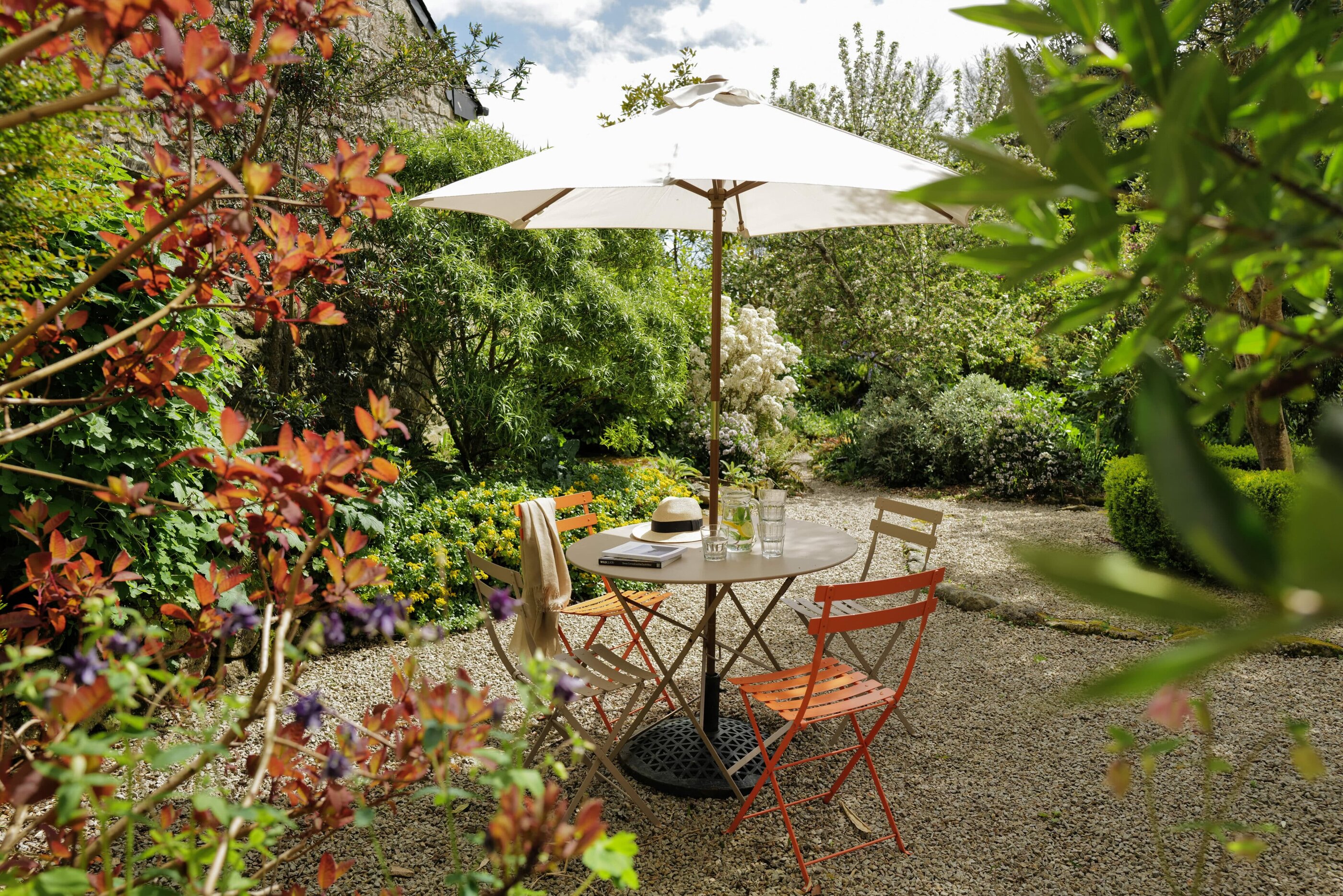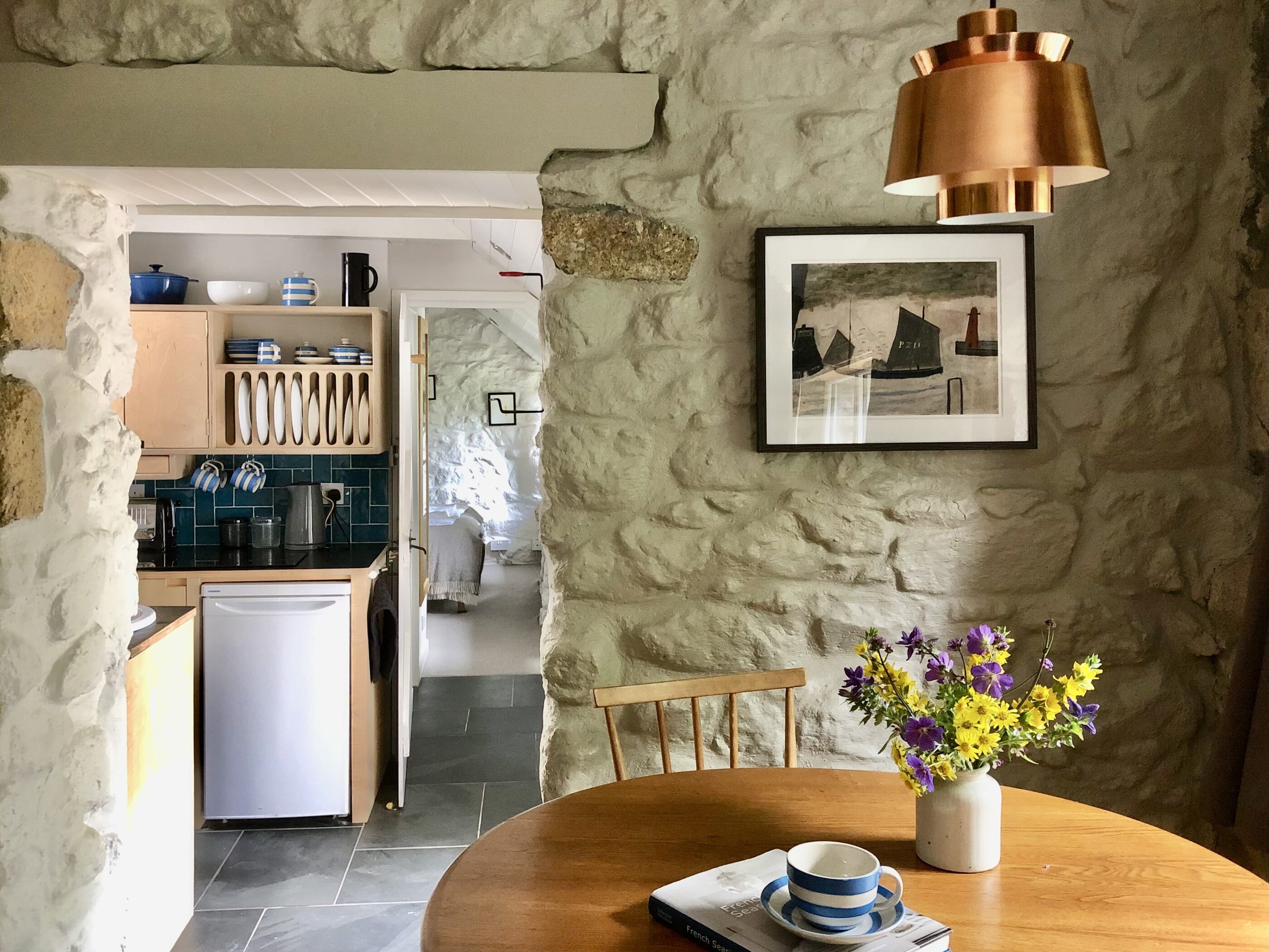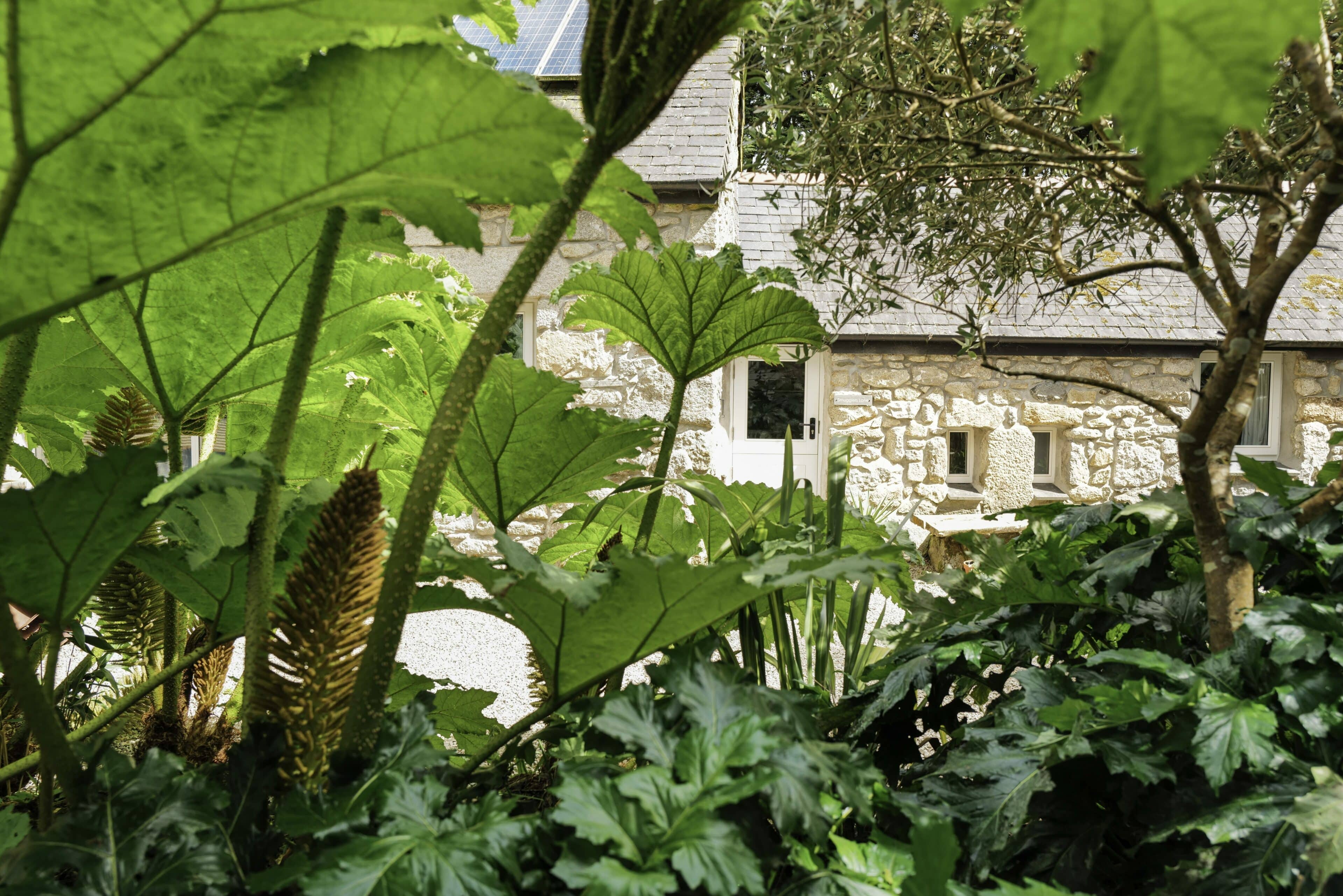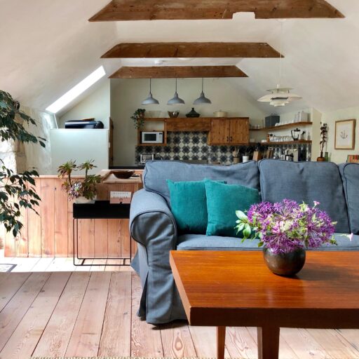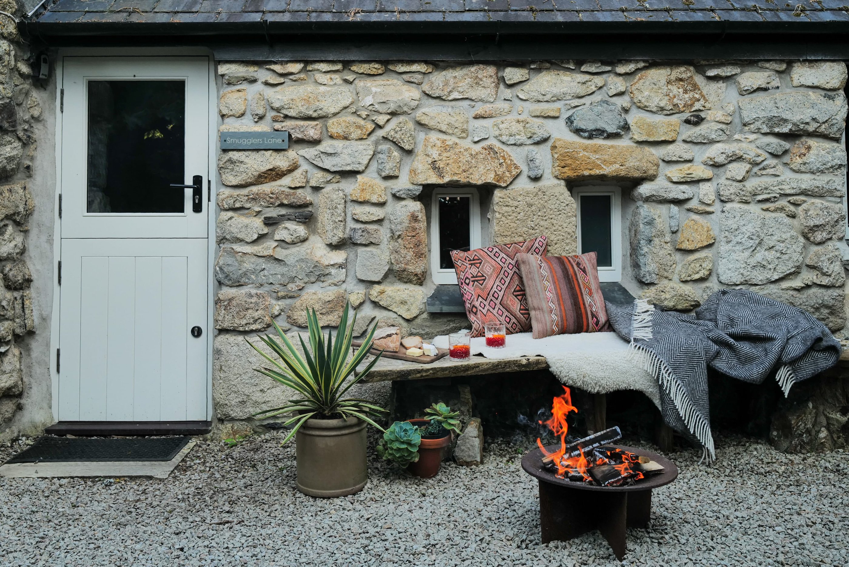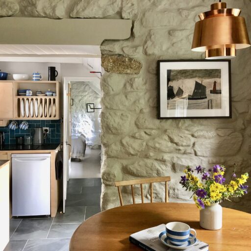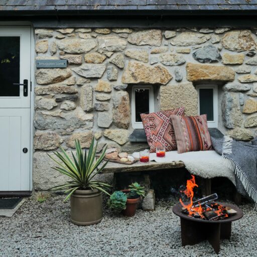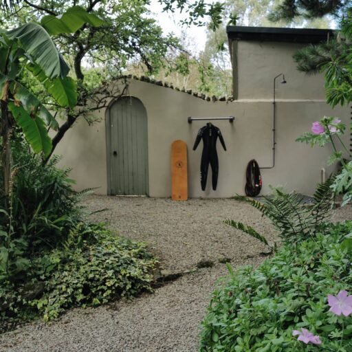 Waves crashing and foaming against the cliffs. Quintessential stone cottages housing all your favorite cafés and ceramic stores, book stores and pubs. Mediterranean gardens from which charming locals greet us with “Hello, love!”. All of this comes to mind when we think of Cornwall. Middle Colenso Farm couldn’t be better suited to match our romantic ideas. Just a few minutes from the cliffs and beaches of the south coast, the two-hundred-fifty-year-old former farmhouse consists of a main house and three vacation cottages set in former barns and outbuildings made of rough granite stone. All around, hydrangeas, bluebells and Christmas roses (depending on the time of year) bloom among exotic greenery such as Redwood leaves, banana trees, palms and tree ferns. But before you have the opportunity to admire all this, you are first welcomed with tea, home-baked scones and home-made jam. This afternoon snack, known locally as Cornish cream tea, is best enjoyed in peace and quiet. And while your gaze drifts over mid-century classics and Scandinavian-British interiors, the serious question arises as to whether you should be wishing for stormy weather to devour one good book after another by the wood-burning stove or hoping that the Gulf Stream will provide warm temperatures. Then you can glide through the water on a bodyboard, play boules in the communal garden or fire up the barbecue in the garden to the sound of birdsong and rustling leaves. In other words, there’s only perfect vacation weather here. A real win-win situation.