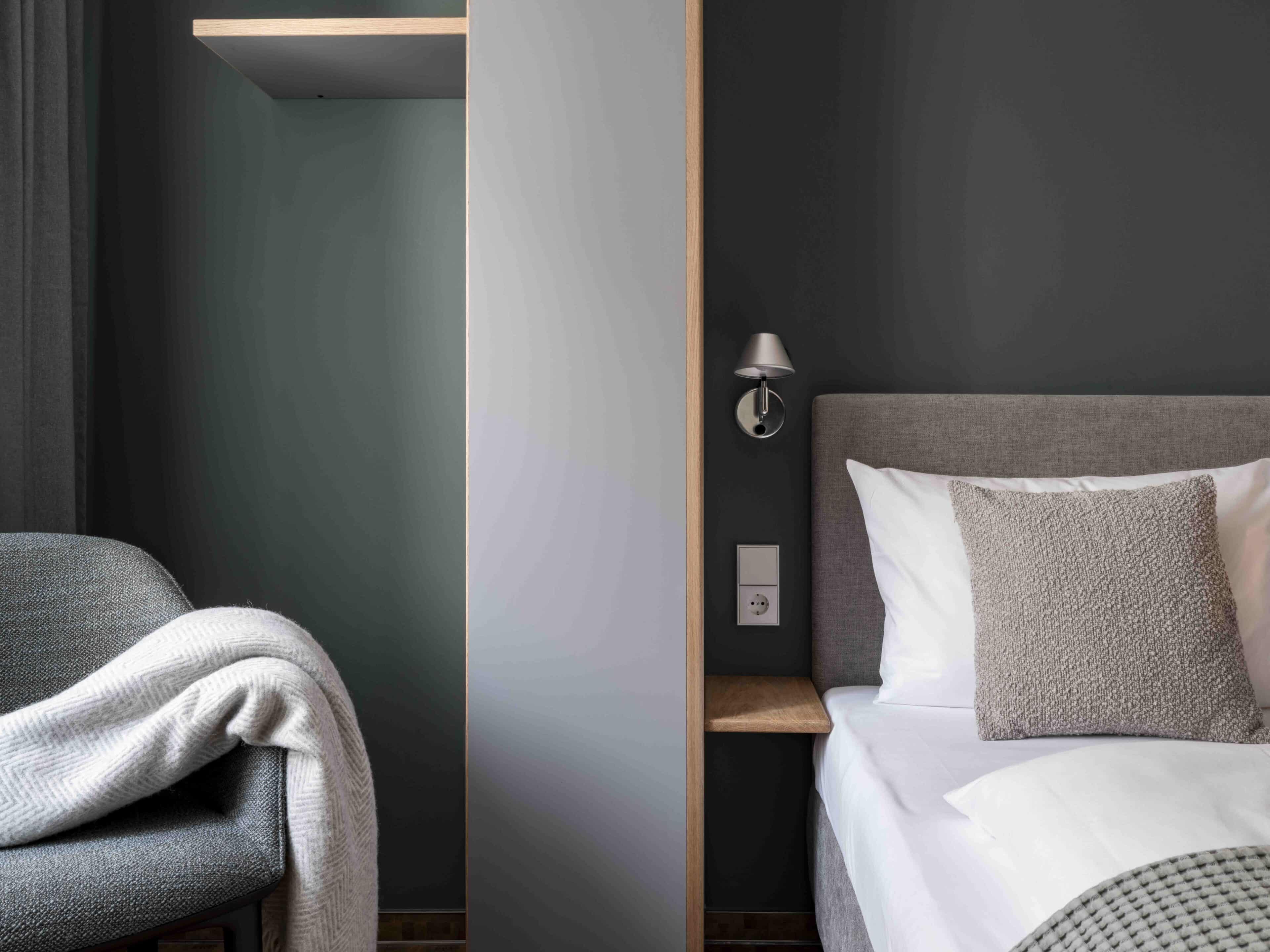 Concerts. Parties. Exhibitions. Theatres. And the Elbphilharmonie concert hall – a crowd puller that seems to outshine all else! Hamburg is worth a visit at any time of the year, whether for a weekend or a fortnight, whether for shopping, enjoying culture or going out to party at nights. The perfect base to start discovering all of the sights is the chic, cool MY PLACE Hotel with its black and grey façade. It’s located in a quiet side street in the young and trendy Schanzenviertel, where all vital necessities are immediately available at almost any time of day: culinary delights from all over the world, small, quaint shops, cafés, bars, but also playgrounds and some beautiful green parks. The MY PLACE Hotel works as a stylish oasis of calm in the hip party district and wins its guests over not only with its wonderfully central location, but in particular with its successful combination of furnishings, which visitors who are primarily on the road during the day feel just as comfortable with as those who mainly go out at night. Super-comfortable beds, the grey, white and partly black colour scheme with a coloured wall for good measure in between and lots of wood, plus pleasant lighting from Artemide all make you feel relaxed and happy. Sustainability is highly relevant to the hotel operators – products from small Hamburg companies are used and sold in the in-house store. Sustainable and locally-produced soaps and shampoos from “Stop the Water” are available in the rooms, any unnecessary packaging is avoided, the waste consistently separated with waste separation stations in every hallway. If you now refrain from using take-away boxes and simply eat directly at the cafés and restaurants in the Schanze district, you’ll be supporting the commitment to sustainability that the hotel operators, the friendly Domann family and their team, abide by. A good night’s sleep will be the probable reward. Whether for the next big family party or a visit to the jazz festival – the small design hotel with a flower-lined mini terrace is the ideal place to stay.