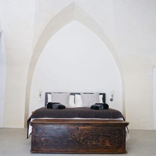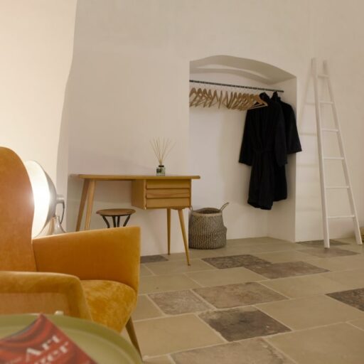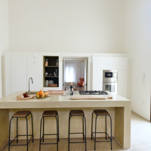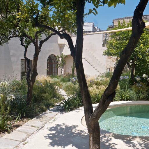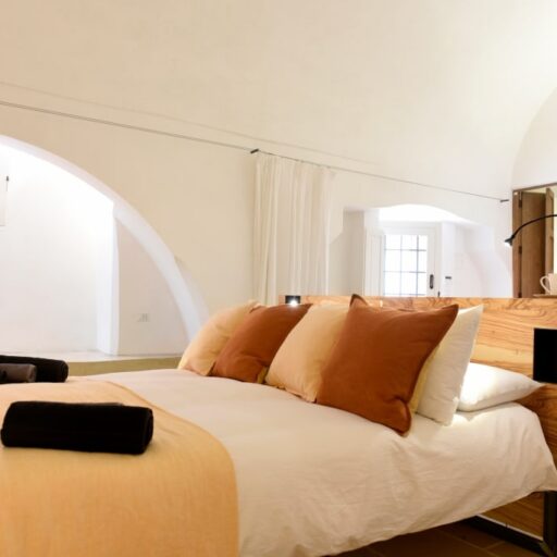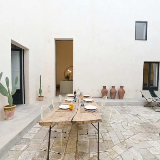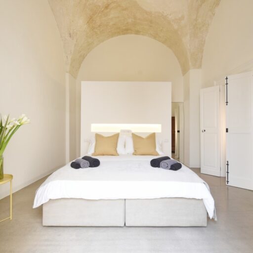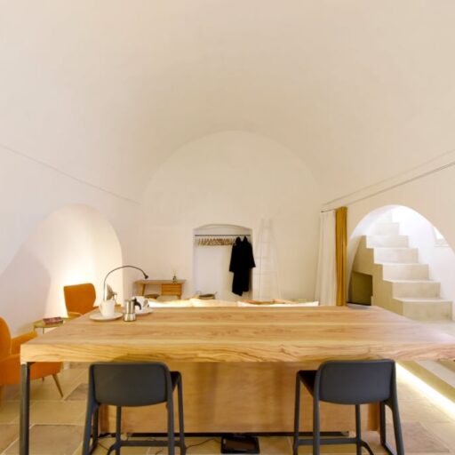Oh Italy, we like you so much! Especially when you show yourself from your picture book side, like here in Salento—far south, right at the heel of the Italian boot. Still without large tourist crowds, but with baroque towns, lots of culture, long sandy beaches, rocky bays and stunningly good food everywhere. The beauty of the region and the incredibly warm and relaxed people here at the southern tip are currently attracting creative people from all over the world. One of them is Belgian Vincent, who fell head over heels in love with the area and a historic 17th century patrician house in the middle of the pretty village of Nardò. In fact, he is now the proud owner of five vacation apartments which aim to delight lovers of design and architecture—with historic vaulted ceilings, atriums, antique tiles and stone floors, stone fireplaces and archways, enchanted courtyards with citrus trees and cacti, spacious terraces overlooking the rooftops of the old town and the stunning sunsets to watch. The decor is minimalist and modern, with some vintage elements. And for those who prefer to take a lot of friends or the whole extended family with them on vacation, several apartments can be combined and offer enough space for up to 13 people.