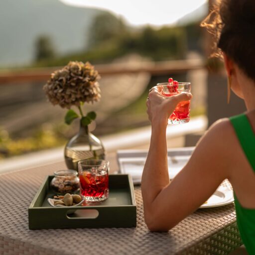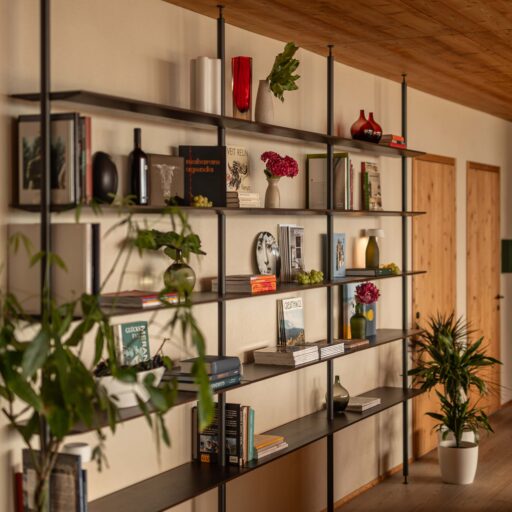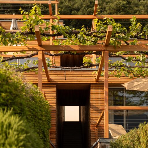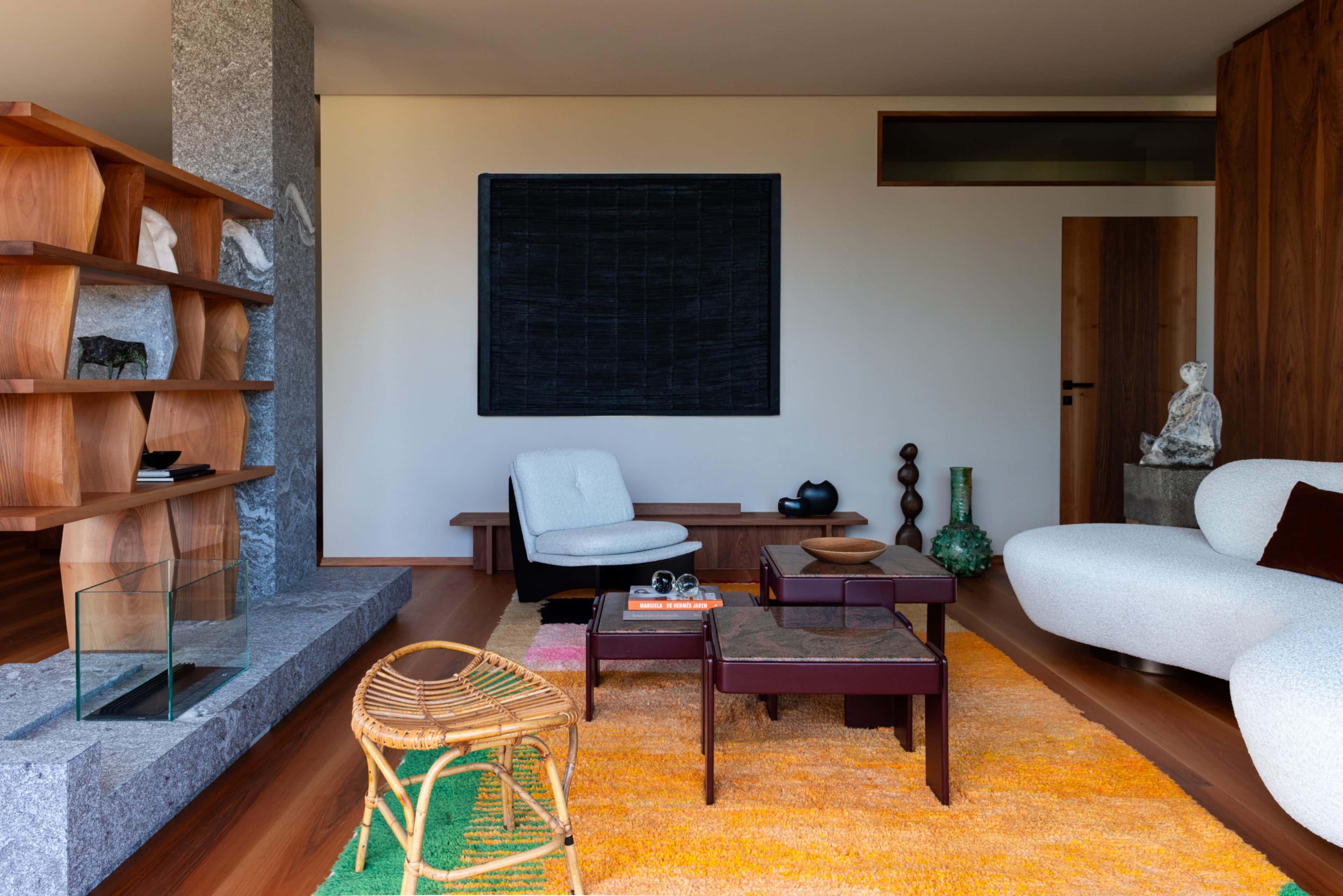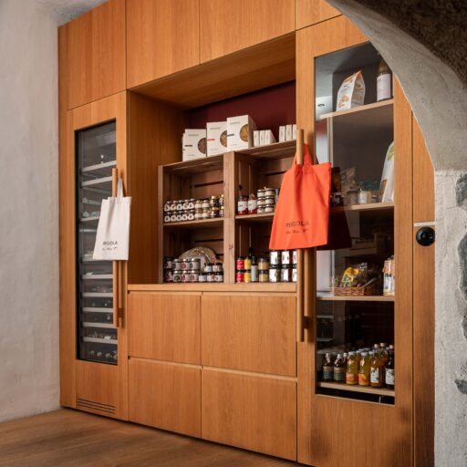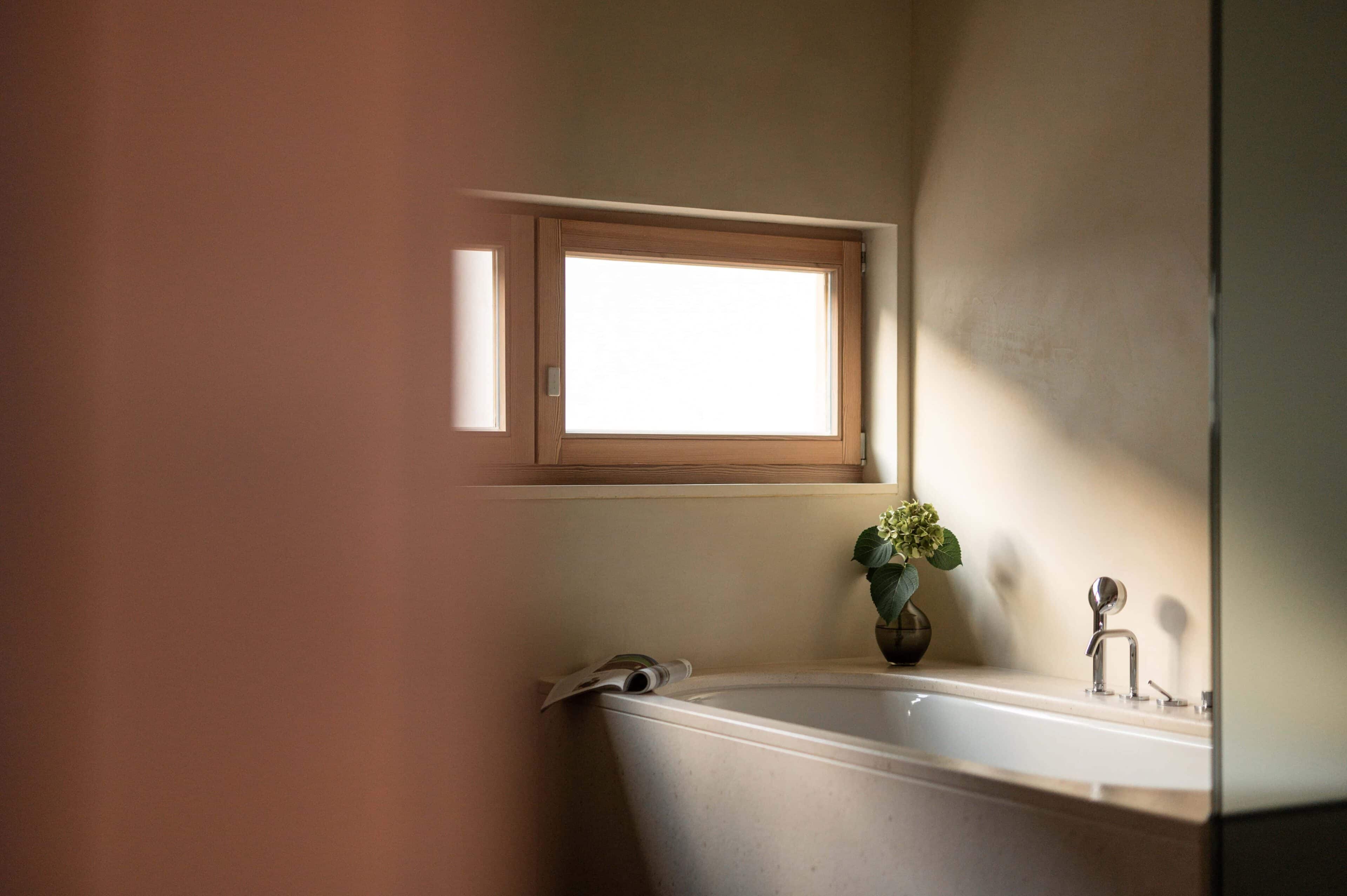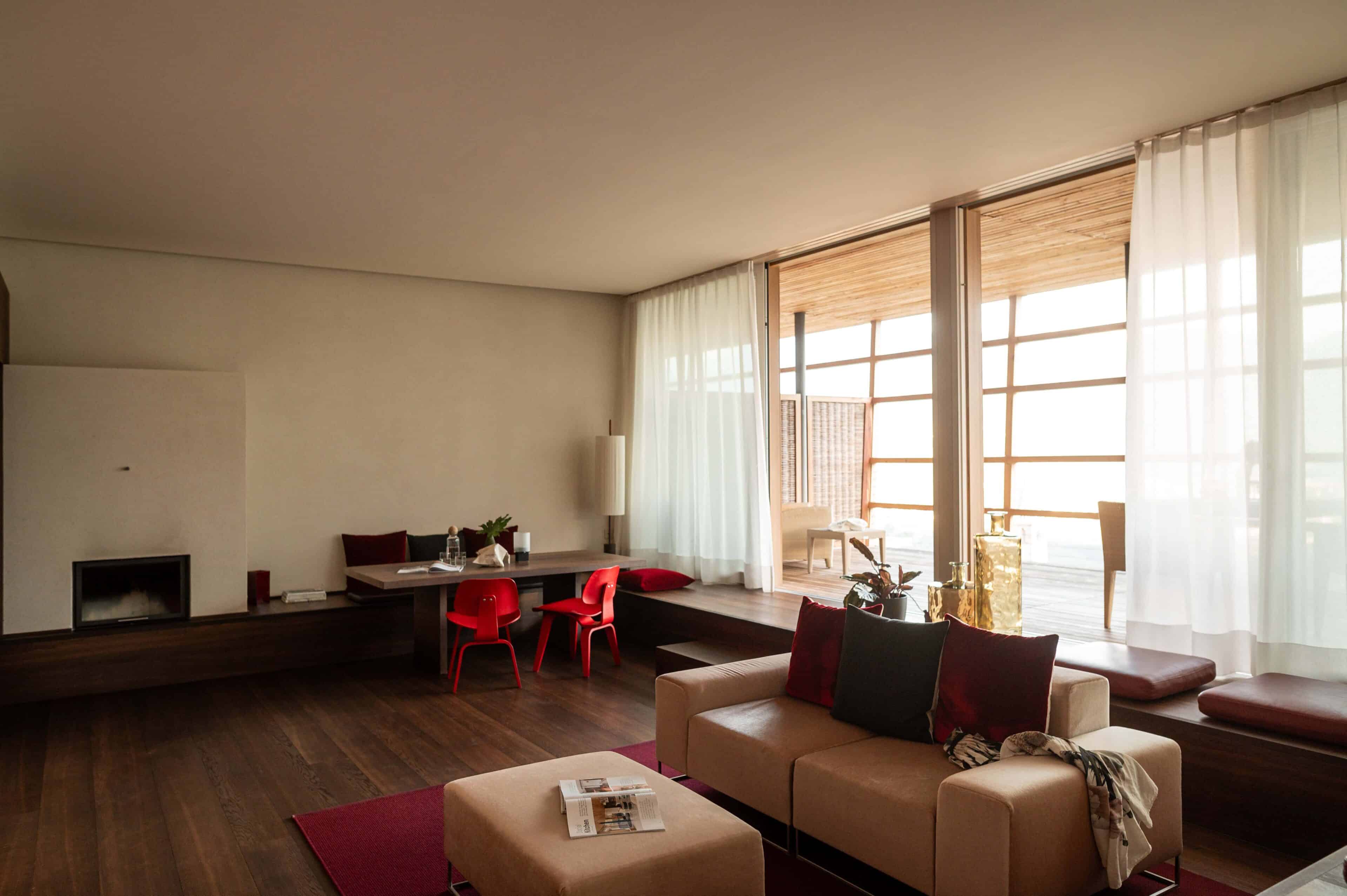 The twelve suites and two penthouses of the Pergola Residence are terraced along the hillside of Algund, as if they were part of the vineyards. Opened in 2004 by Ruth and Josef Innerhofer, this is a place to lie back and breathe easy, especially for guests who would rather follow their own rhythm while on vacation, and rather not have to dress up for breakfast in the morning. The apartments bear the signature of South Tyrol-born architect Matteo Thun. Thanks to his use of local materials and subtle proportions, his buildings seem to blend into the hilly landscape – an approach that the owners have maintained. Twenty years after the Pergola Residence opened, Josef’s daughter Karin Innerhofer began the next chapter of the property’s story: on the hillside above the apartment complex, she created Spazio 46. Its concrete construction has a young and modernist feel, but fits into the landscape just as well as the original structures. The new building has an emphasis on the wellness factor: an infinity pool on the roof, a panoramic sauna, and an open-air gym offer glorious views of the surrounding area. Architect and designer Hannes Peer, who also hails from the region, is the interior designer. In the luxury Loft 46 apartment for two, he combines local craftsmanship with cosmopolitan design standards. By combining elegant surfaces, vintage furniture in the style of the 1960s, like the sofa lounge around the freestanding fireplace, and custom-made elements, such as the intricately crafted wooden room divider, he draws on the craftsmanship of regional artisans and reinterprets it at the same time. As different as the architecture of the two buildings may be, what connects them is their sense of place. They are the ideal address for nature-loving connoisseurs who value their privacy.
