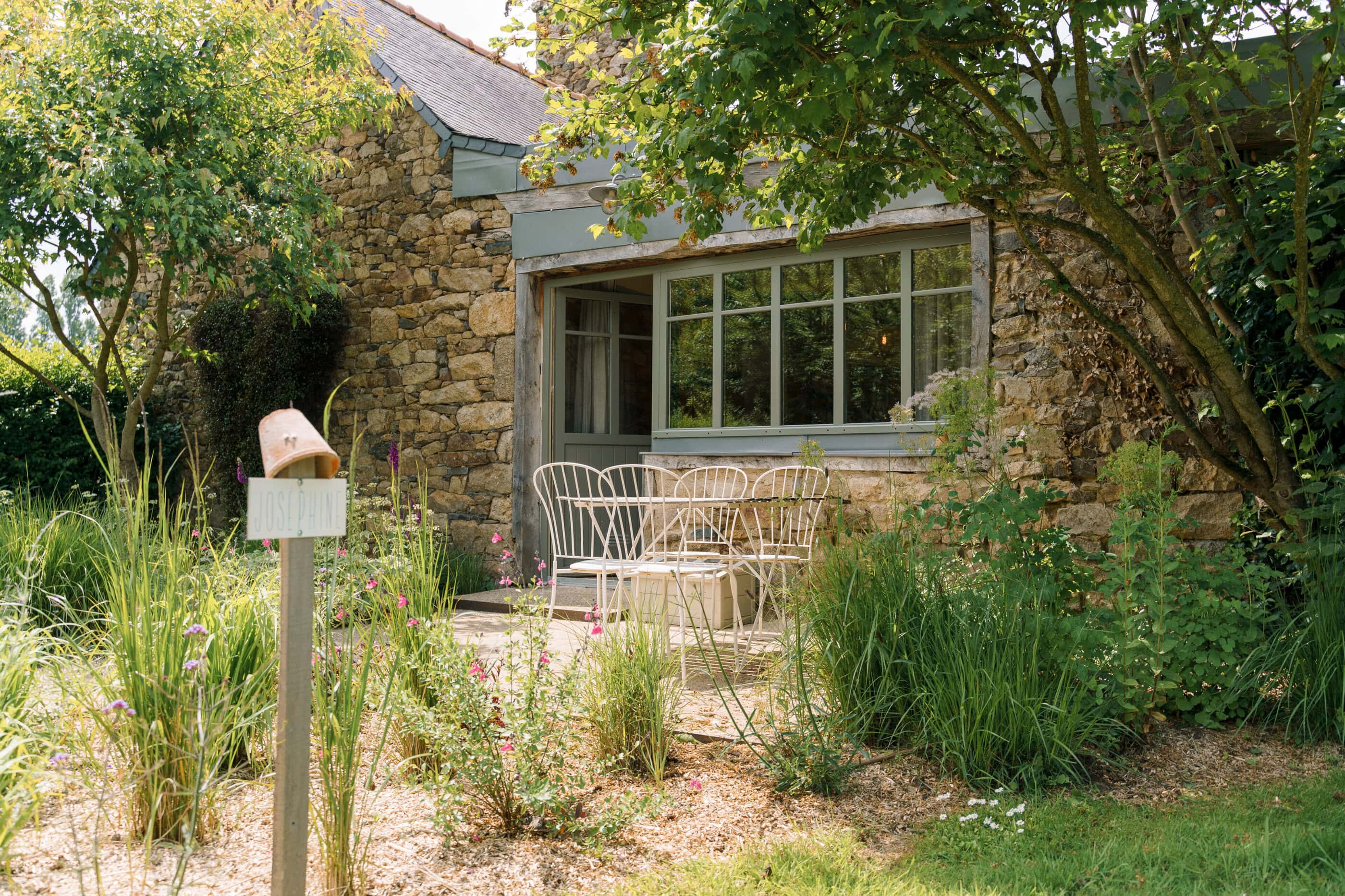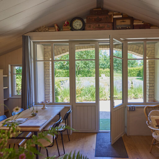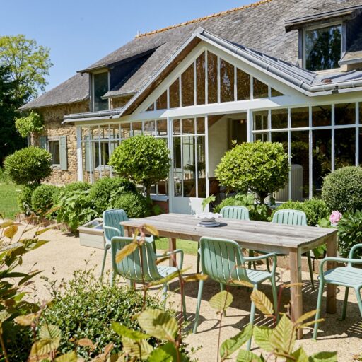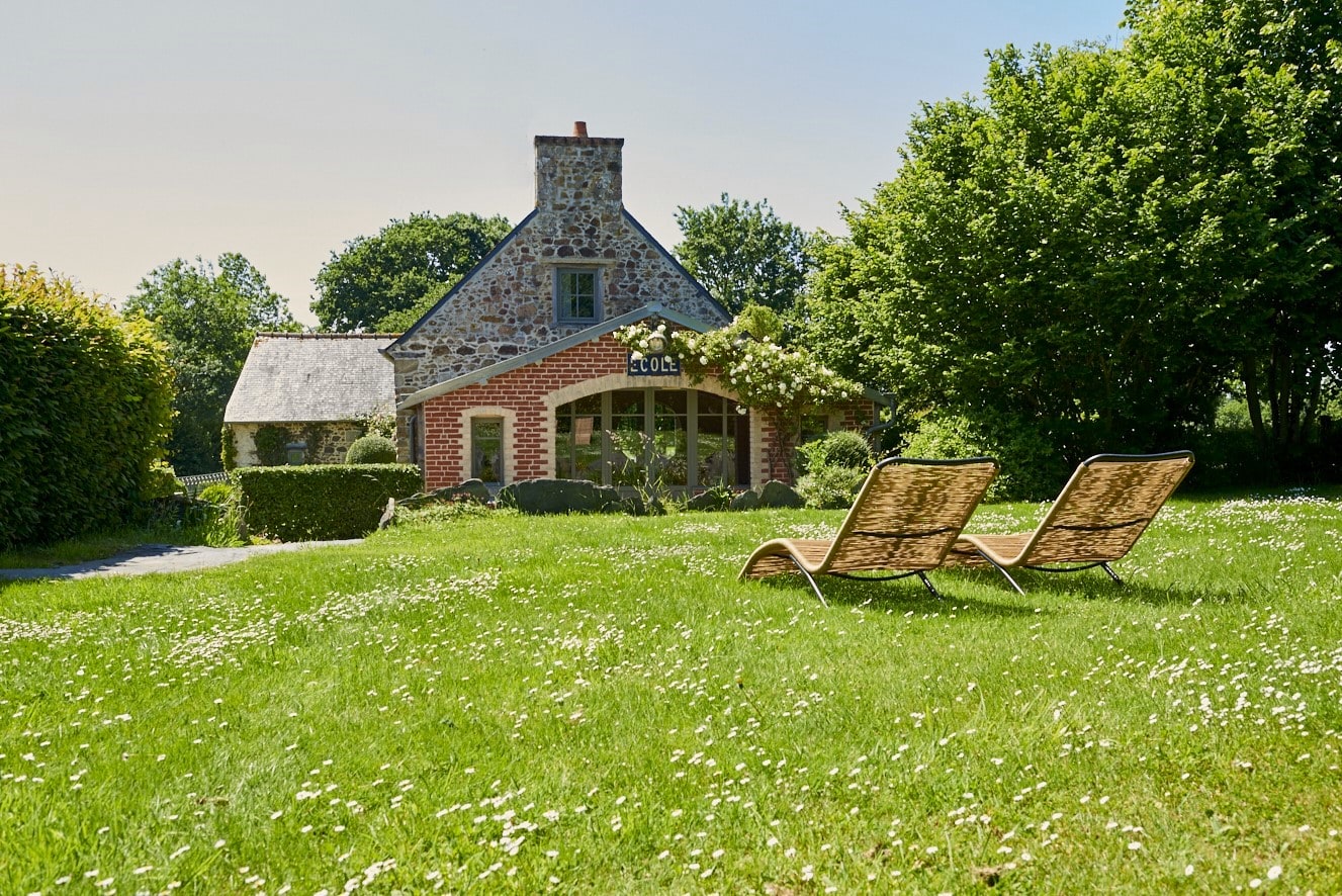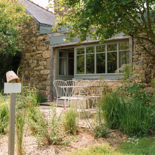Rose, Florence, Louise, Josephine, Isidore, Jeanne, Anne and Marie—these simply melt in the mouth like creamy chocolate mousse and are the names of the former residents of eight beautiful vacation homes in Brittany. One lady is more enchanting than the other: There is Isidore with the charm of an artist’s studio and a real glass house in the middle—serving as a children’s kingdom. Then there’s pretty little Florence for two with her mix of cottage and mini-loft and the wooden-fenced terrace in front of the large window. And Jeanne, who must have been a teacher in real life, because the old school chairs, blackboards and maps here are reminiscent of a school from long ago. The eight cottages vary in size and the furnishings are a charming mix of old and new. They are all located on the Côte d’Amor in Brittany, on the small farm of the Irish-French host family Liz, Corentin and their four children. Between meadows, cornfields and a small orchard, guests have plenty of space to read, play, run around or do nothing. With all the idyllic surroundings, it’s hard to leave the farm, but there are plenty of excursion destinations: The spectacular pink granite coast, many beaches and bathing bays, islands and places steeped in history—none of them far away. On some days, however, you may just want to sit in one of the striped sun loungers, wave to the children whizzing past, and enjoy an aperitif while feeling fabulously French.