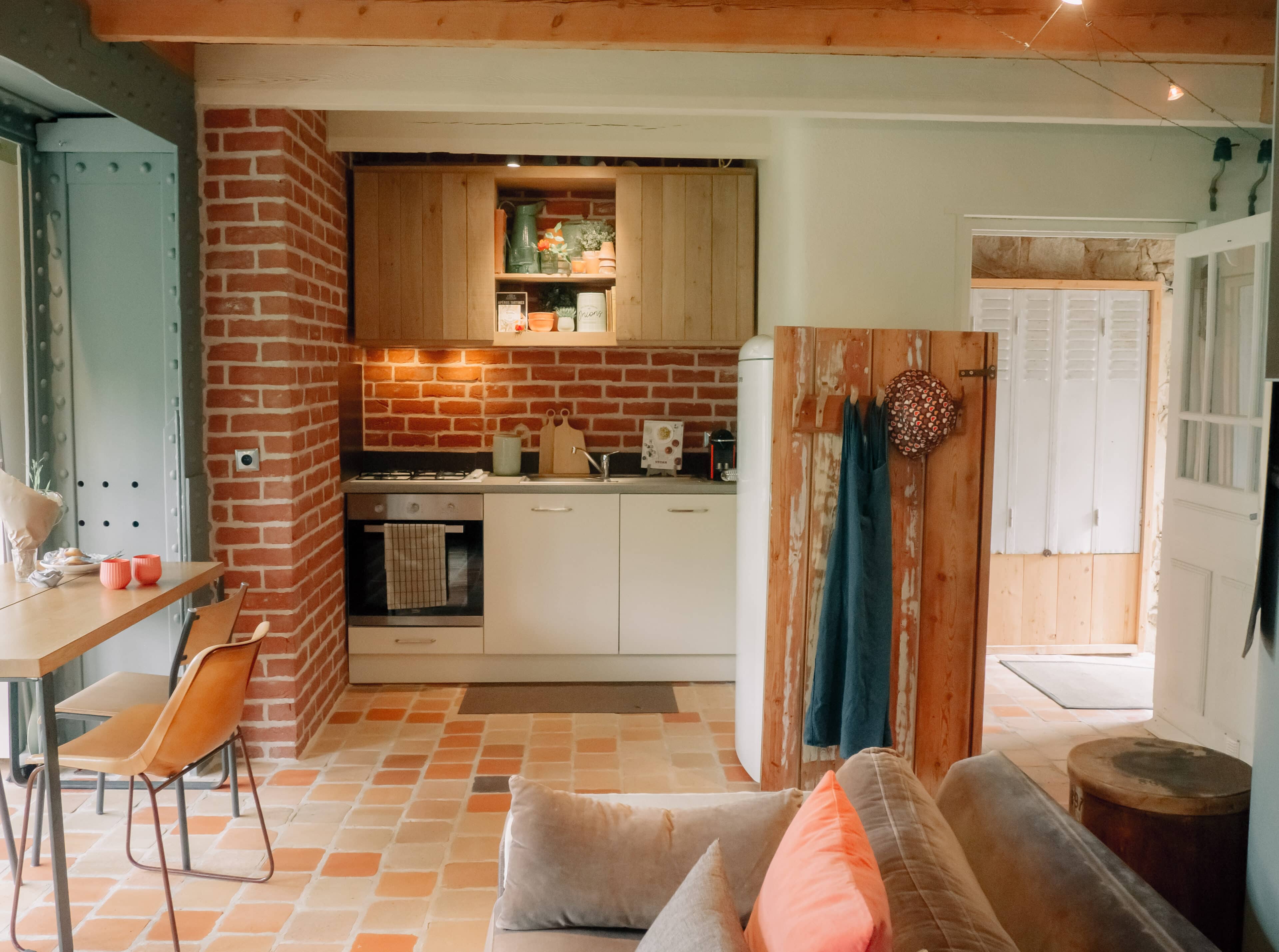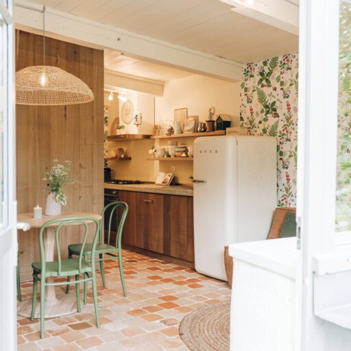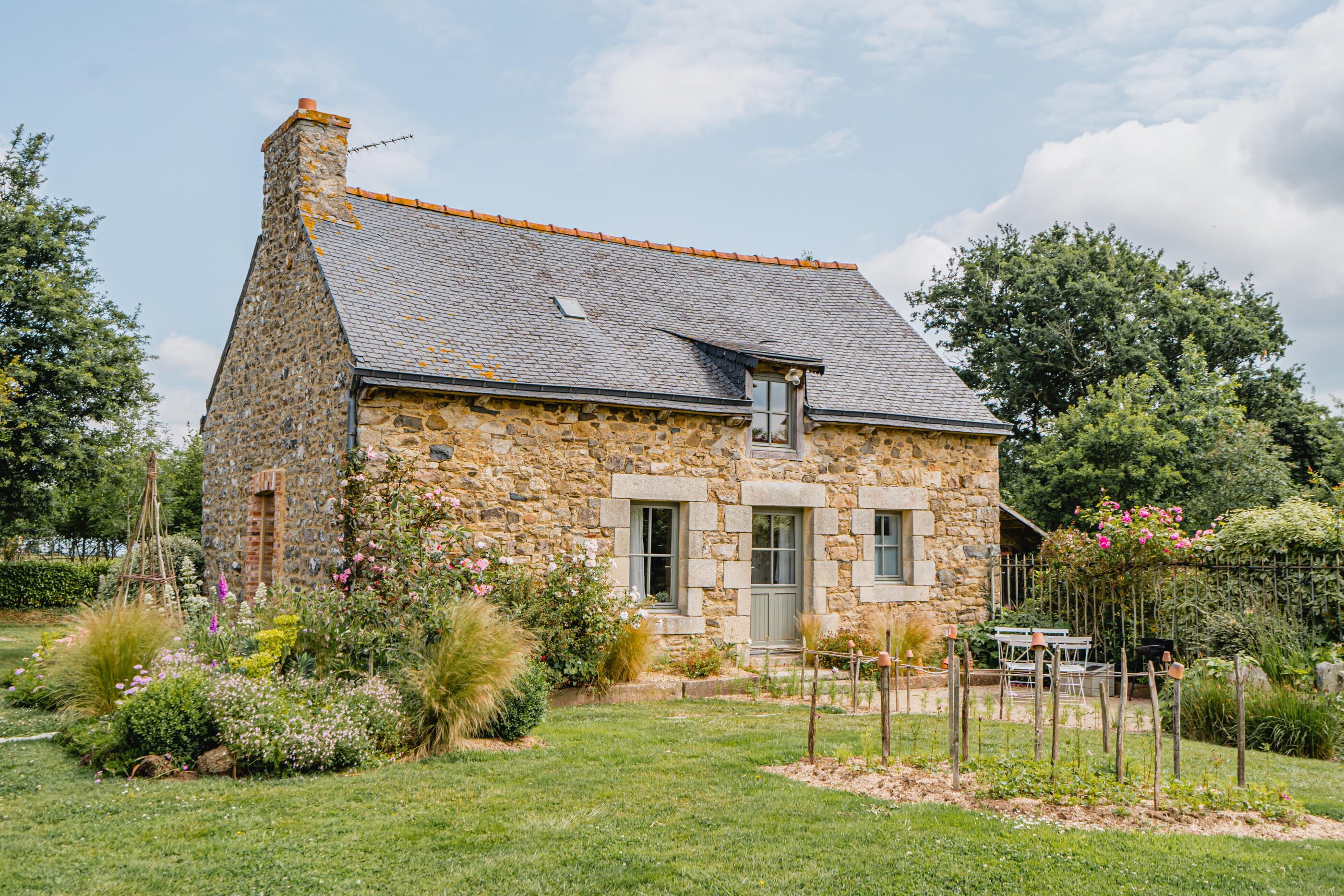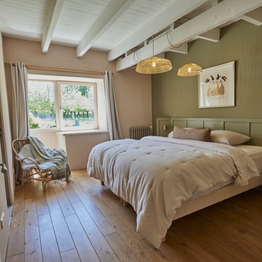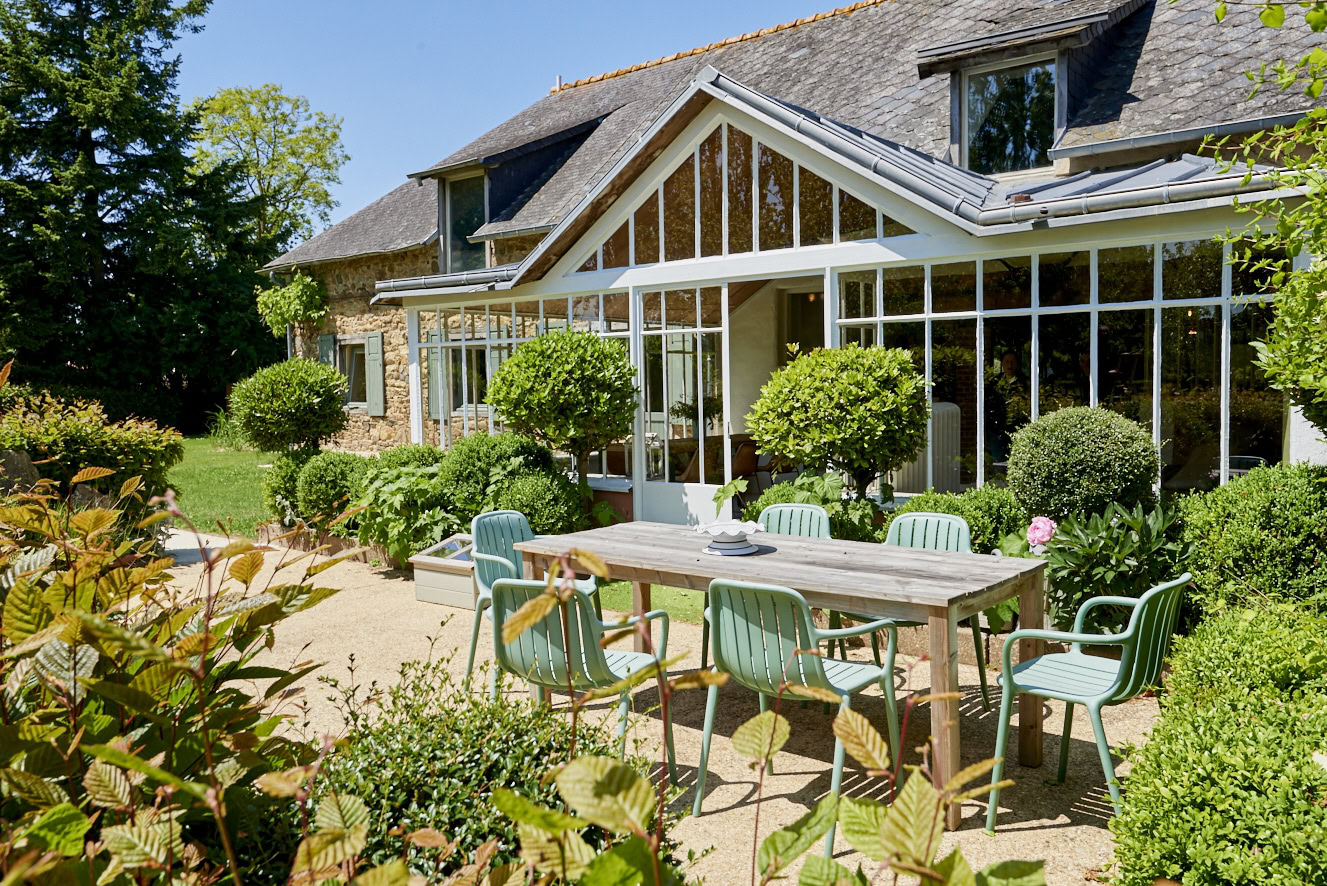 Rose, Florence, Louise, Josephine, Isidore, Jeanne, Anne and Marie—these simply melt in the mouth like creamy chocolate mousse and are the names of the former residents of eight beautiful vacation homes in Brittany. One lady is more enchanting than the other: There is Isidore with the charm of an artist’s studio and a real glass house in the middle—serving as a children’s kingdom. Then there’s pretty little Florence for two with her mix of cottage and mini-loft and the wooden-fenced terrace in front of the large window. And Jeanne, who must have been a teacher in real life, because the old school chairs, blackboards and maps here are reminiscent of a school from long ago. The eight cottages vary in size and the furnishings are a charming mix of old and new. They are all located on the Côte d’Amor in Brittany, on the small farm of the Irish-French host family Liz, Corentin and their four children. Between meadows, cornfields and a small orchard, guests have plenty of space to read, play, run around or do nothing. With all the idyllic surroundings, it’s hard to leave the farm, but there are plenty of excursion destinations: The spectacular pink granite coast, many beaches and bathing bays, islands and places steeped in history—none of them far away. On some days, however, you may just want to sit in one of the striped sun loungers, wave to the children whizzing past, and enjoy an aperitif while feeling fabulously French.