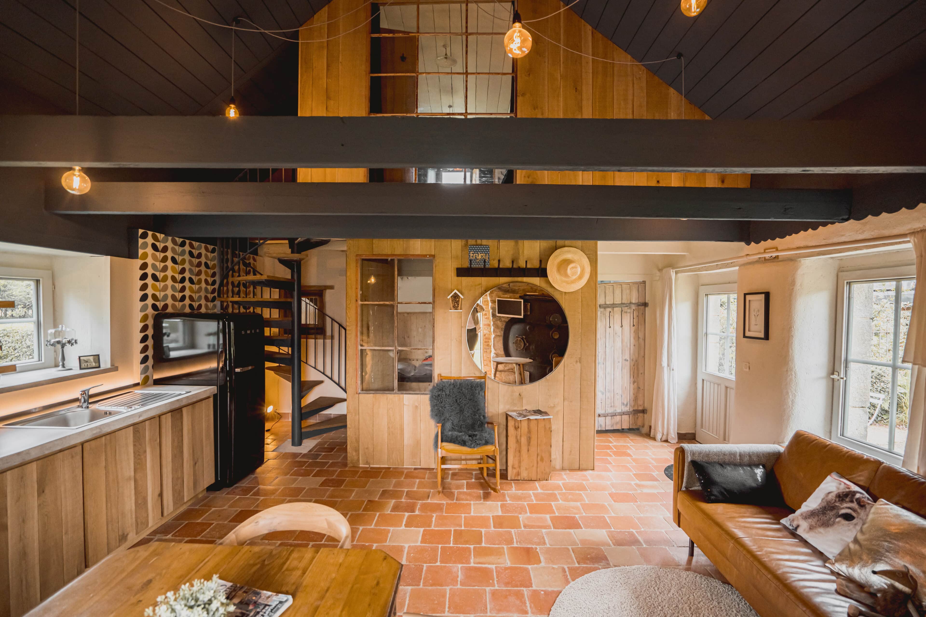 - The creative interior design: Natural materials such as stone and wood combined with steel or polished concrete, plus furniture from antique dealers, flea markets and modern design objects. Everywhere there are unusual fixtures, stairs, niches or windows to discover and marvel at.