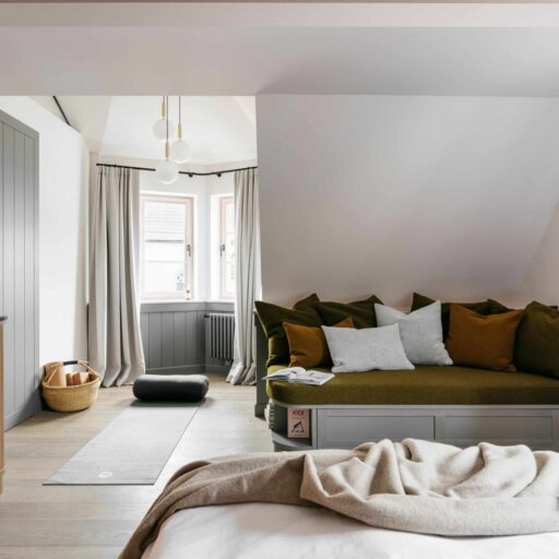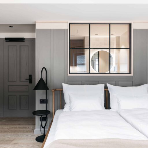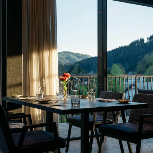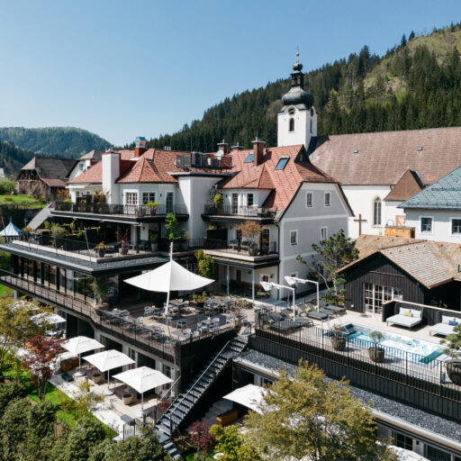 They say there’s a boutique hotel right on the church square in Lunz am See where you can leave your everyday life at reception. Who would turn down such an offer? Swap tax returns, kettle descaling and rush hour traffic for room keys—for a home away from home, but without all the stressful things that often come with it. The history of the hotel in Lower Austria with its 23 individual rooms and suites goes back five centuries. What was then a hostel for traveling salesmen has attracted an urban clientele since its reopening in spring 2023—people looking for a retreat that combines nostalgia with the desire for something new. And those who enjoy being out in nature, swimming in the lake, boating, long walks and hikes, ice skating and cross-country skiing or simply having a good time “at home”. Swim a few lengths in the year-round heated pool, find your inner center in the yoga room (or at least search for it) and enjoy the regional and seasonal cuisine, which encapsulates the hotel’s philosophy in a rather delicious way: “Not more of everything, but enough of the essentials”. High-quality ingredients meet artisanry: Hand-churned butter, home-baked bread, pickled vegetables just like back in grandma’s day. The aesthetic concept of the rooms is just as tasteful and harmonious. During the renovation, the fabric of the building, such as the centuries-old vaulted arches, the rough stone wall in the old parlor and a wooden beam dating back to 1661, were carefully repaired. There is also plenty of matt black wood, a concrete look, oak floorboards and elegant furniture—and the comforting feeling of having completely forgotten about the “to do” folder on the desk at home.
