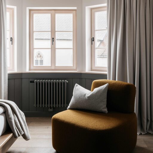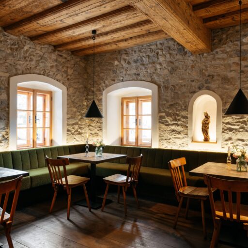- The owners Joachim Mayr and Heinz Glatzl, who operate in the background, are the founders of a cooperative for crafts, architecture and design called “Formdepot”. Just like the cooperative, the Refugium is set to develop into a vibrant place to showcase design and craftsmanship.