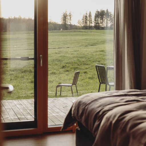 - Waking up with a view of the forest and meadow, rolling out one of the yoga mats provided on the loggia or simply walking from the vacation home into nature (the nearest forest is less than a kilometer away)