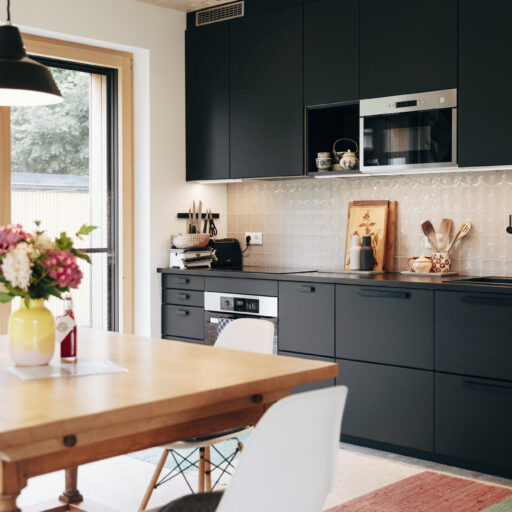 - The beautiful individual pieces: In the Kathi apartment, there’s a table made from oak planks from an old pedestrian bridge and a custom-made kitchen; in the Max apartment, there’s a mural in the children’s room by host and artist Christian.