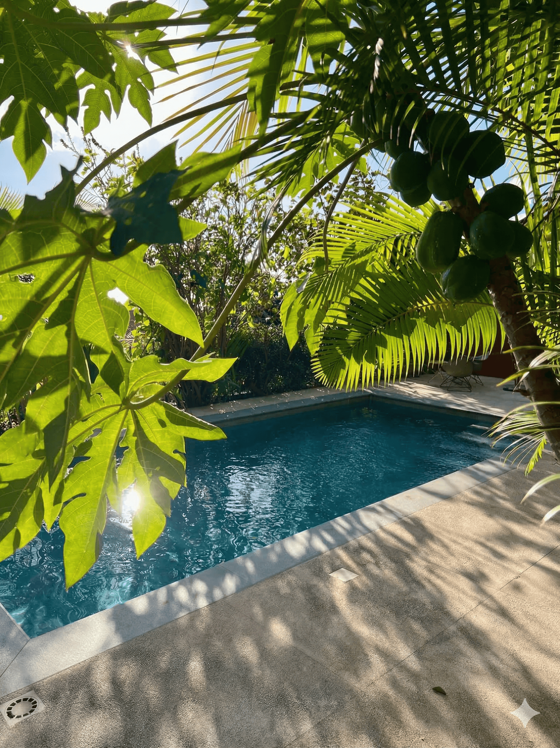 - The private saltwater pool, where you can swim laps amidst lush greenery and birdsong. After a swim or for a quick cool-down, an outdoor shower awaits.