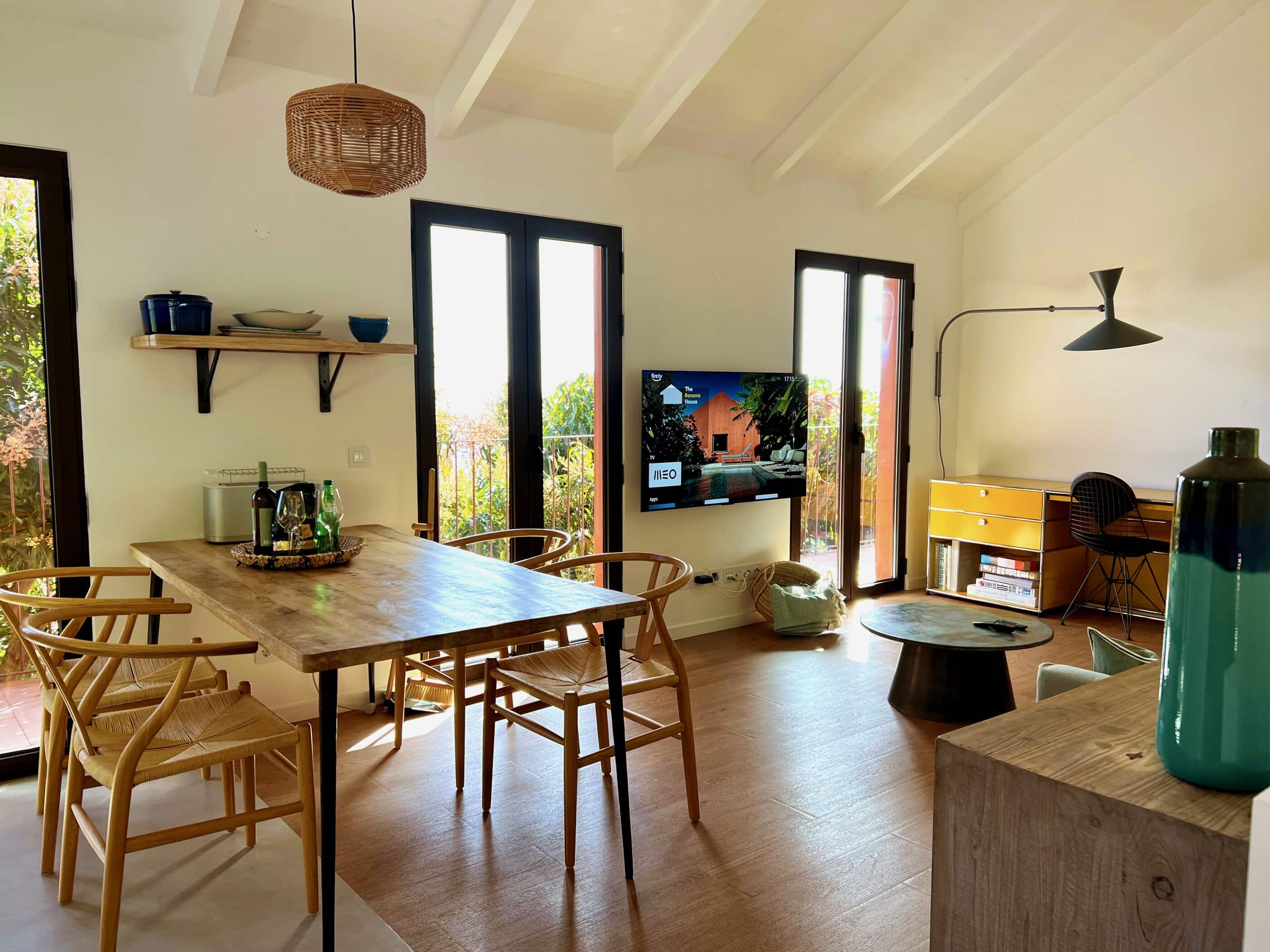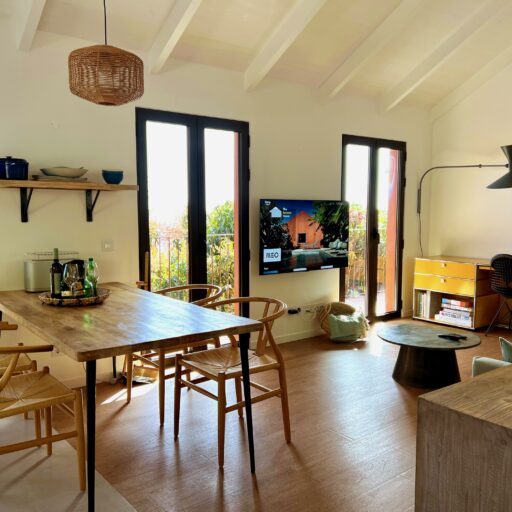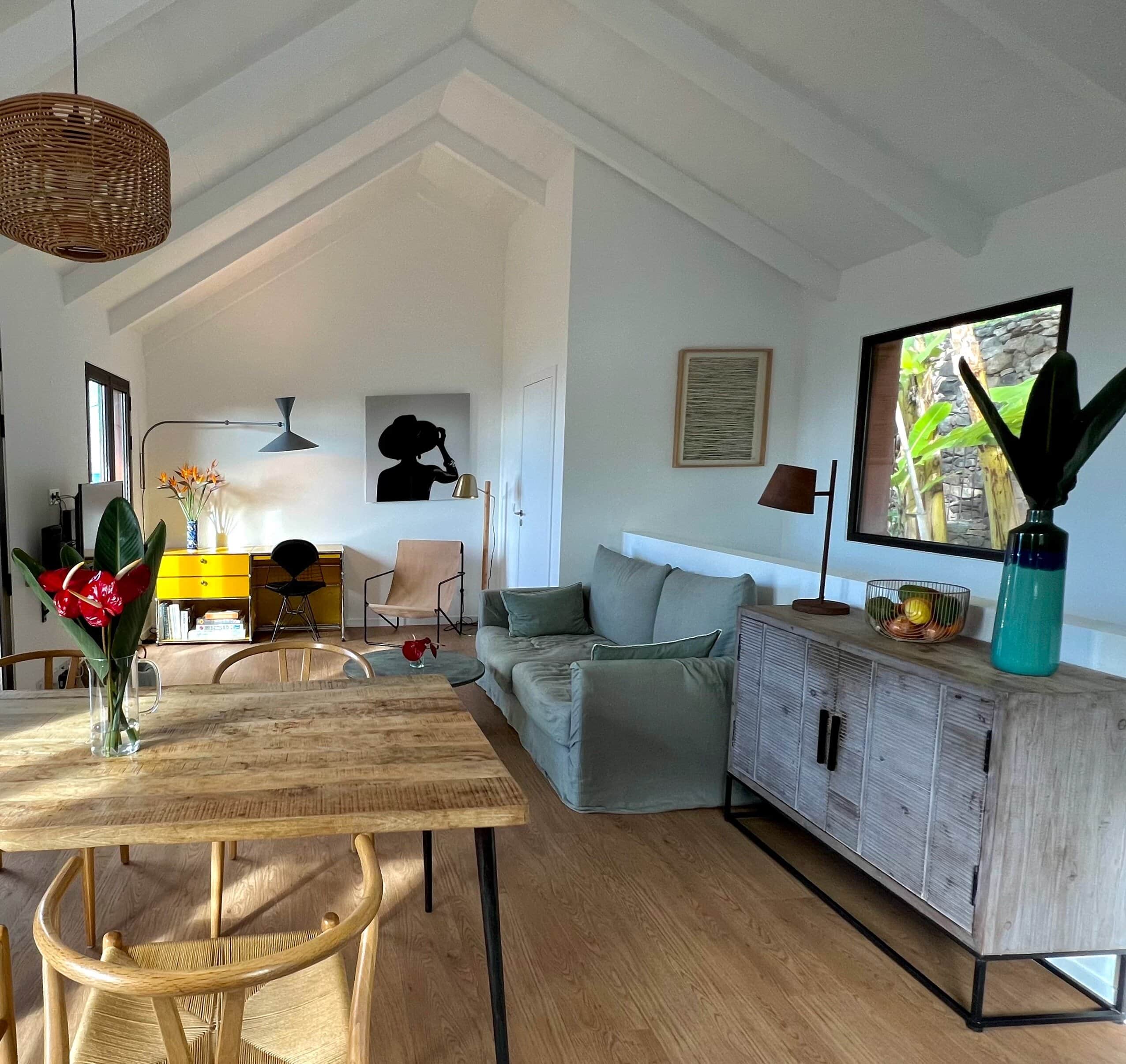 - How the rooms feel so airy thanks to the open architecture, the white walls, and the light wood furniture, complemented by special vintage finds.
