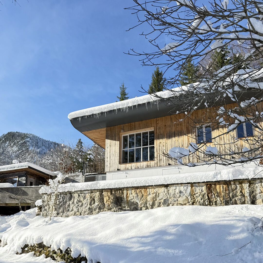 • Thanks to the photovoltaic panels on the roof and the fireplace, the house can be run self-sufficiently in all seasons.